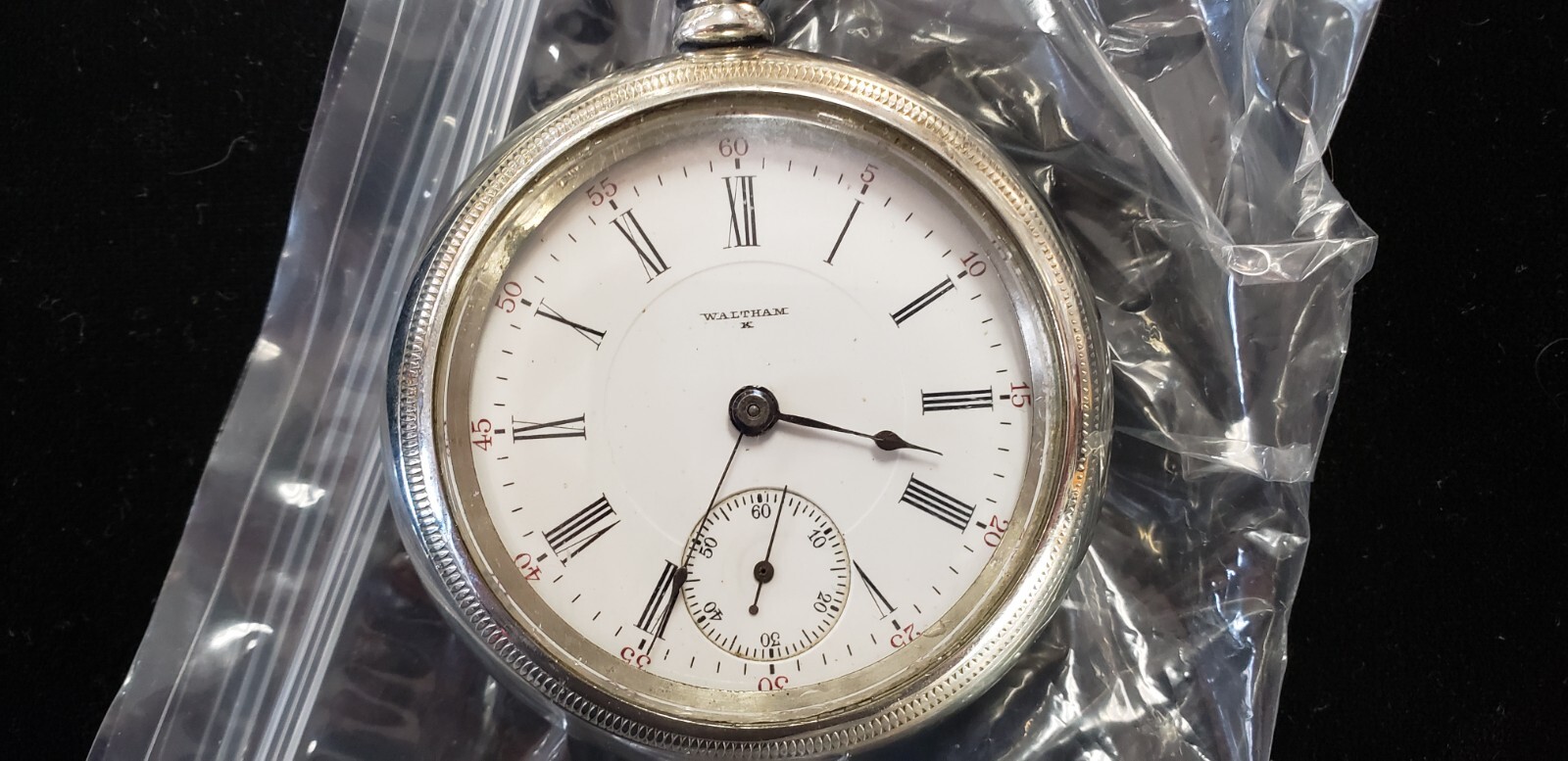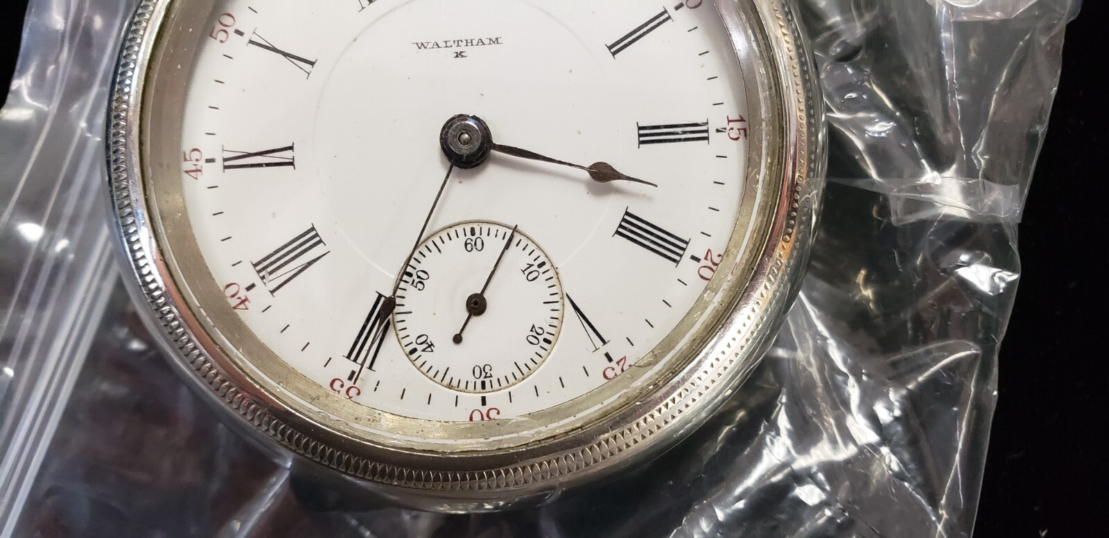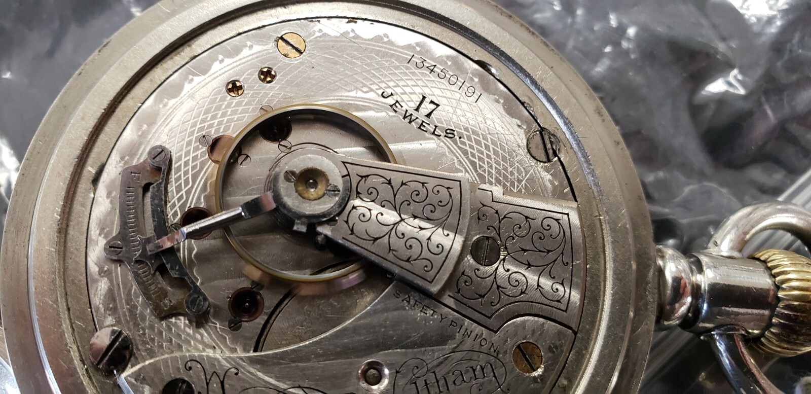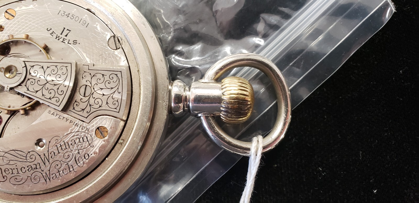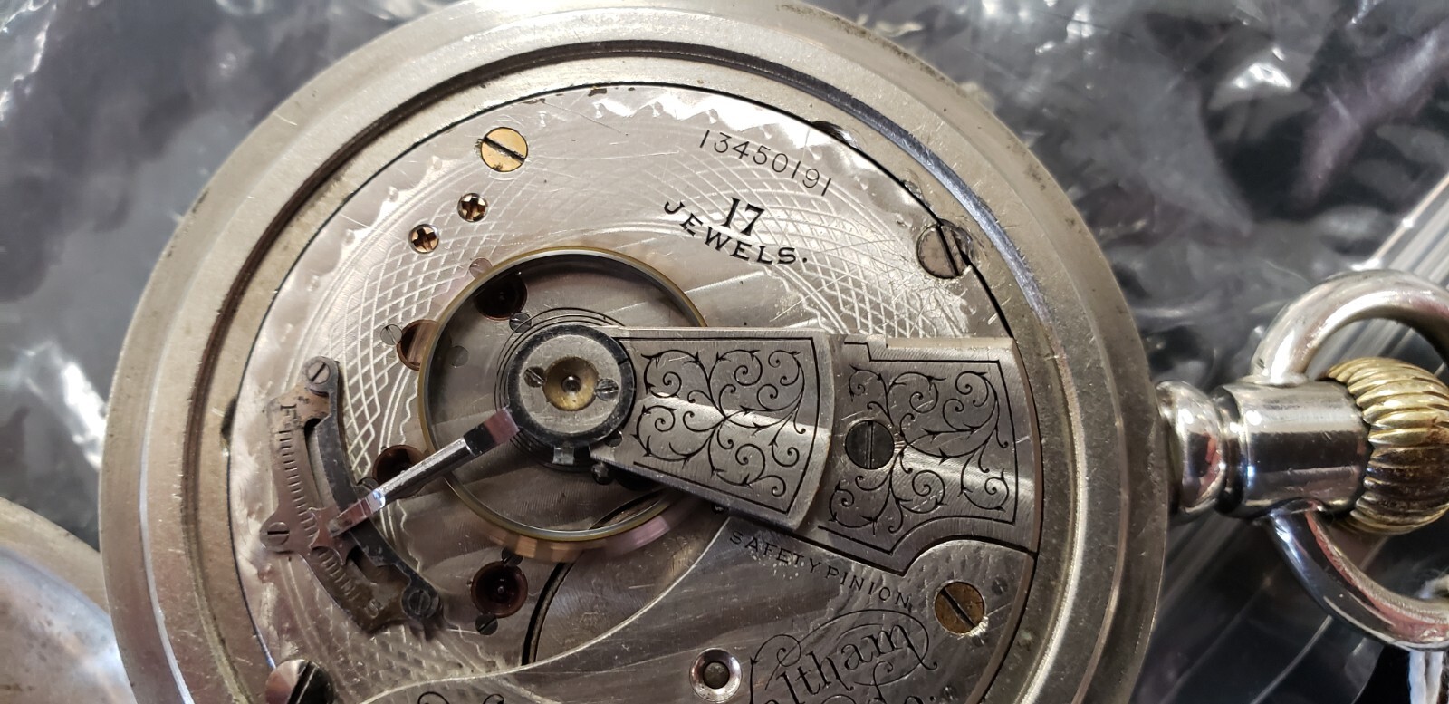 как выглядит 1903 Waltham, Grade 825, 18s, 17j, Silverode case, very reflective, running фото