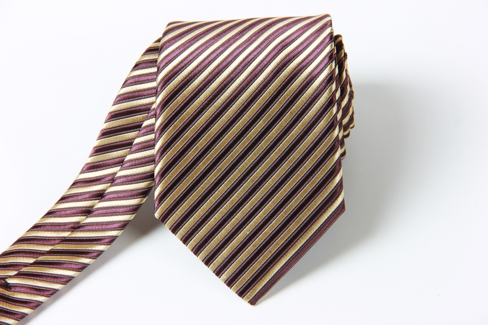 как выглядит New Classic Striped Brown Gold JACQUARD WOVEN 100 Silk Men