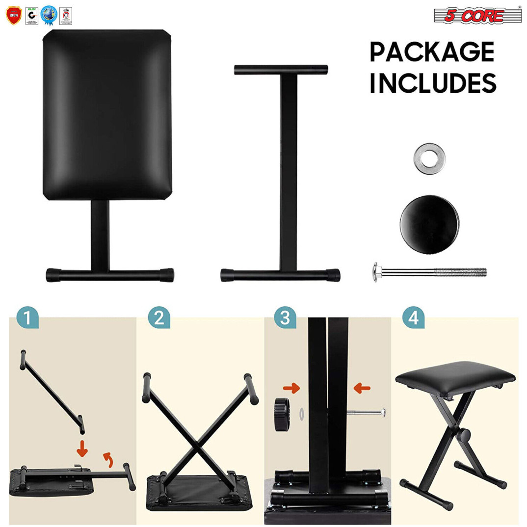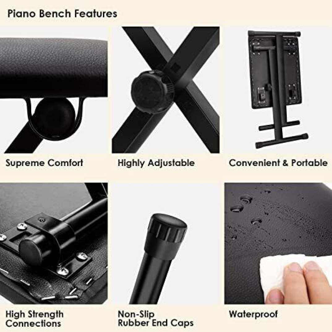X-Style Piano Bench Padded Chair Seat Adjustable Height Keyboard Stool Black