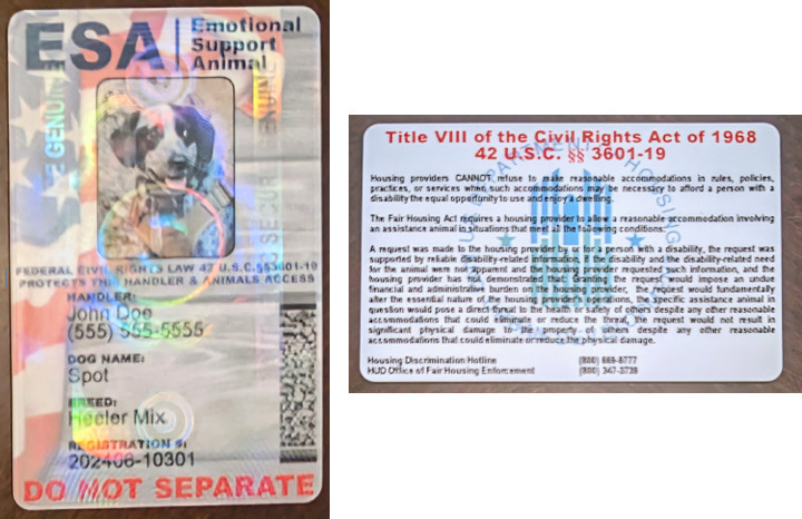 как выглядит HOLOGRAPHIC EMOTIONAL SUPPORT ANIMAL ID ESA PHYSICAL DIGITAL фото