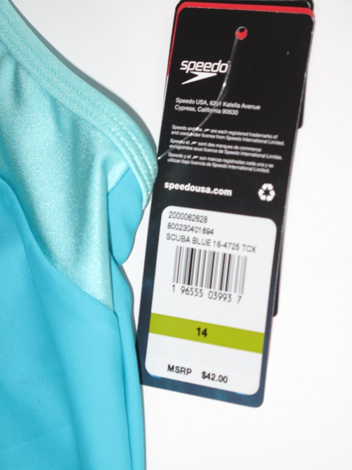 SPEEDO Girl's Size 14 Swimsuit 1 Pc Swim Scuba Blue Eco Flex NWT
