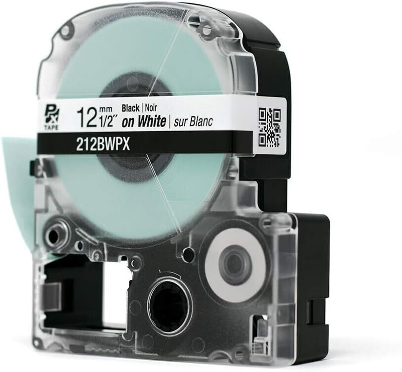 Epson LABELWORKS 212BWPX PET Polyester Tape Cartridge Black on White SM051