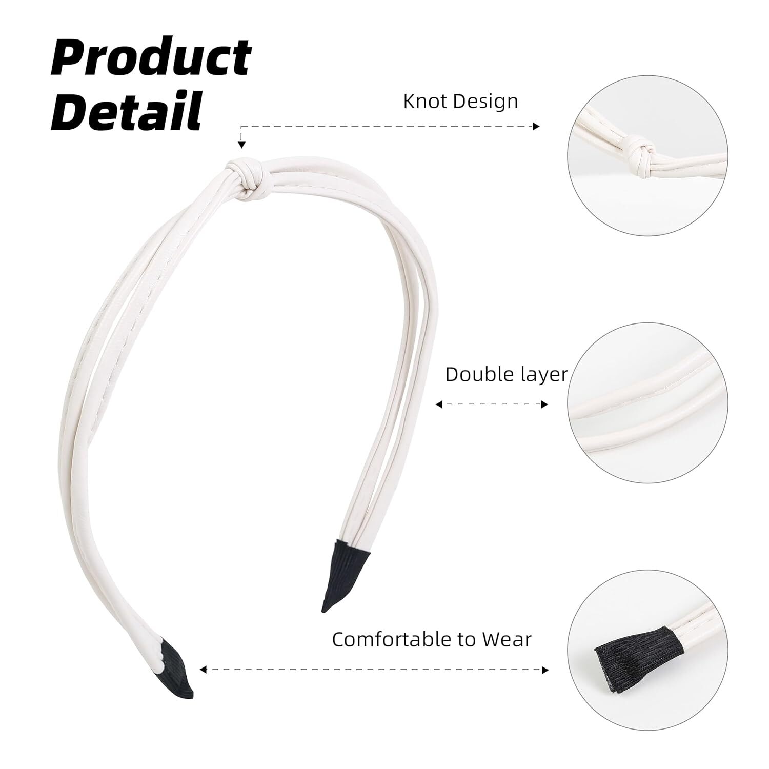 WOVOWOVO 5 Pcs Thin Leather Headbands for Women, Cute Knotted Head leather