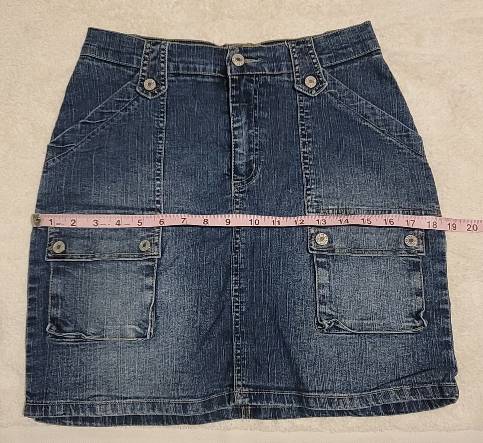 как выглядит Route 66 Stretch Fit Dark Wash Pocket Zip / Button Denim Jean Skirt Size 8 EUC фото