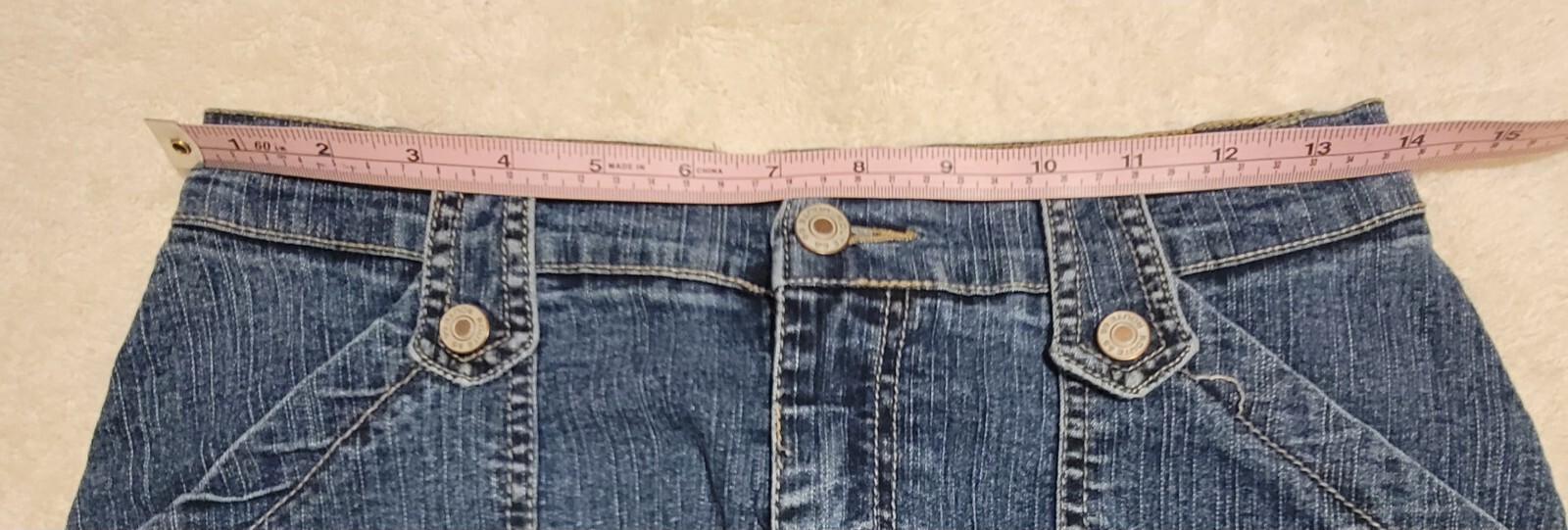 Route 66 Stretch Fit Dark Wash Pocket Zip / Button Denim Jean Skirt Size 8 EUC