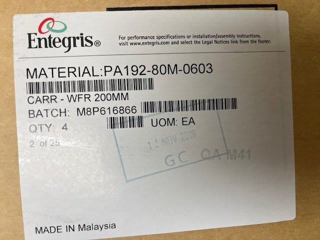 ENTEGRIS 200 mm 8 inch Wafer Cassette, BLUE, PA192-80MB-0603. LOT OF 4