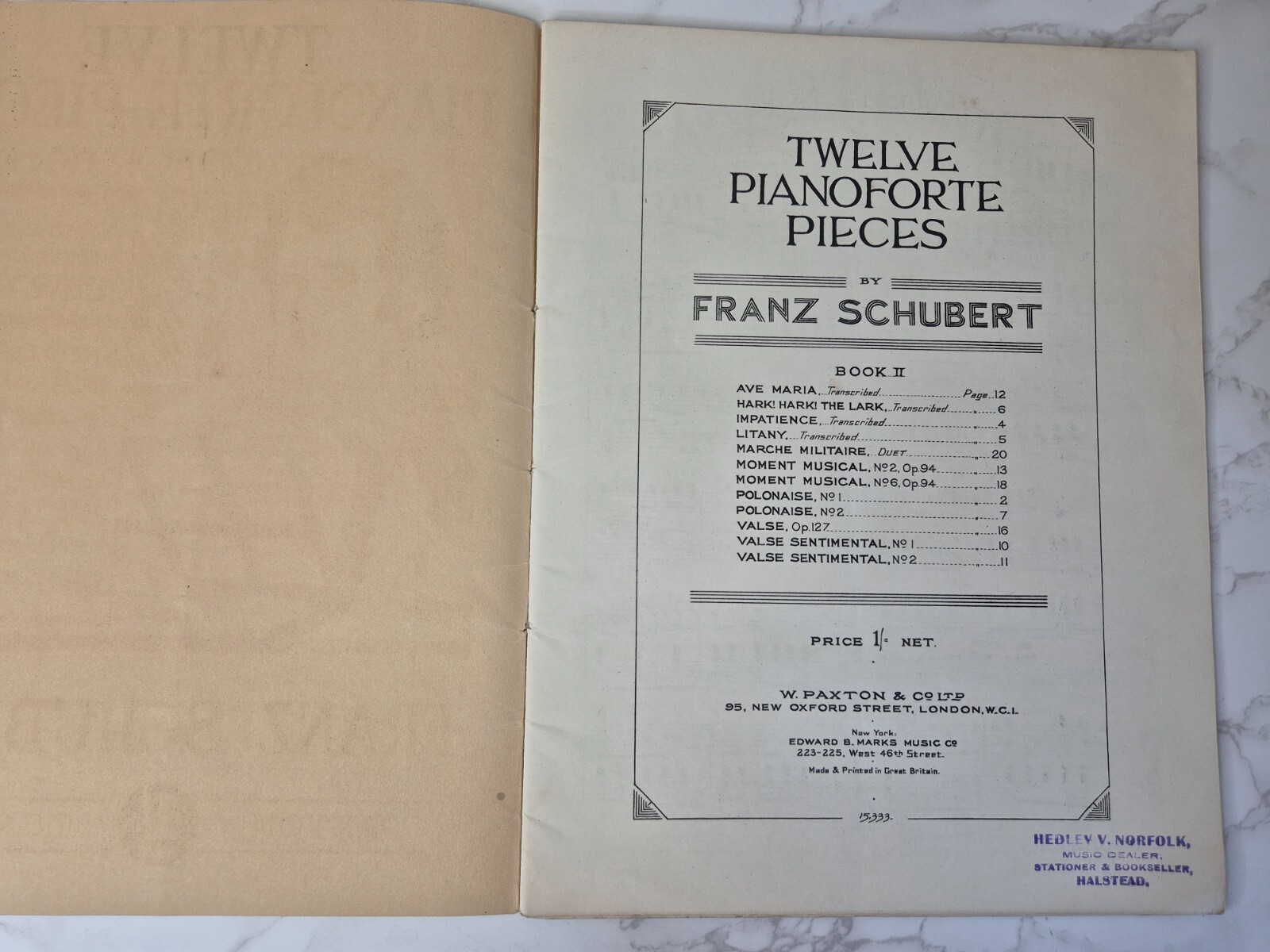 Twelve Pianoforte Pieces Book II by Franz Schubert 1929 Paxton