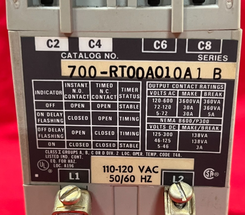 ALLEN BRADLEY 700-RT00A010A1 SOLID STATE TIMER BULLETIN 700 TYPE RT SERIES: B