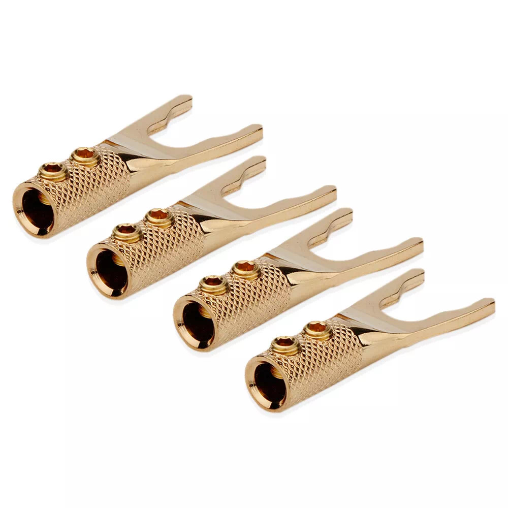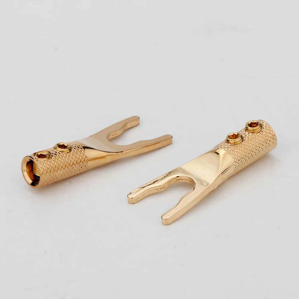 как выглядит 4PCS Hole 5mm Copper Gold Plated Y Spade Plug HiFi Audio Speaker Cable Connector фото