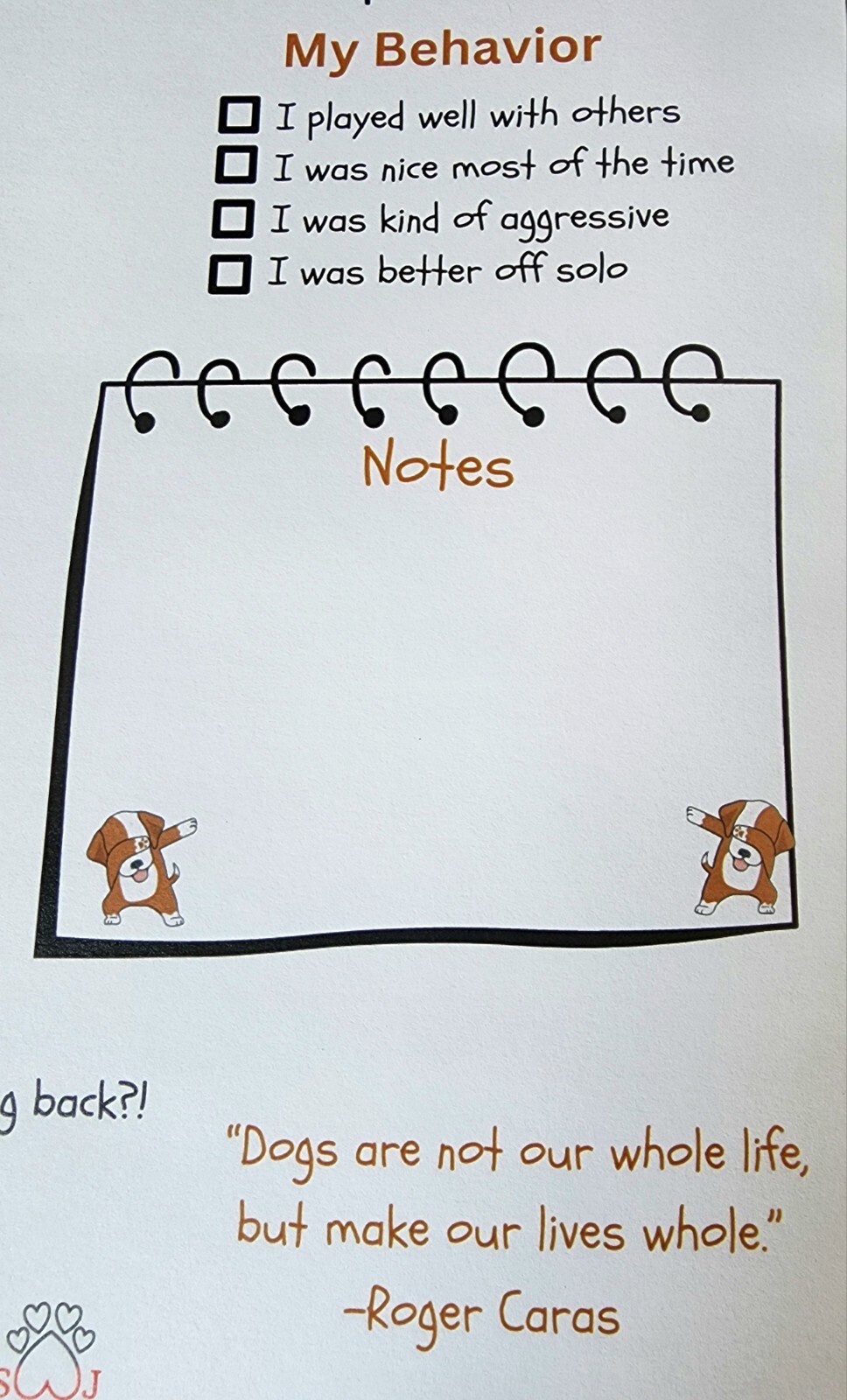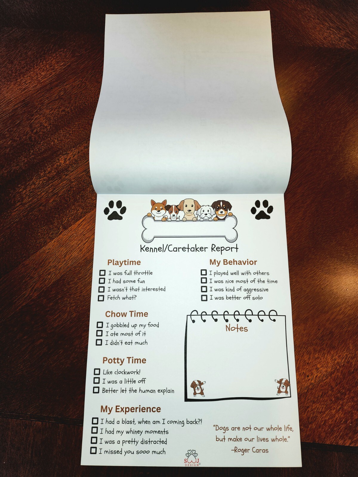 Dog Kennel/Day Care/Dog Sitters Report Cards 50 Page, 8.5 X 11 Pad