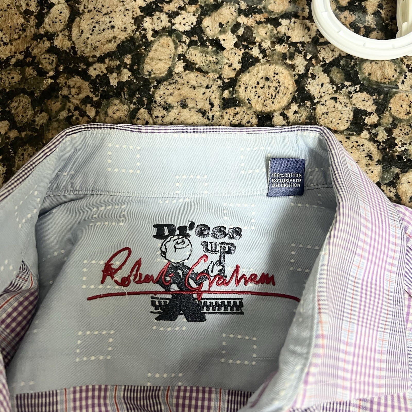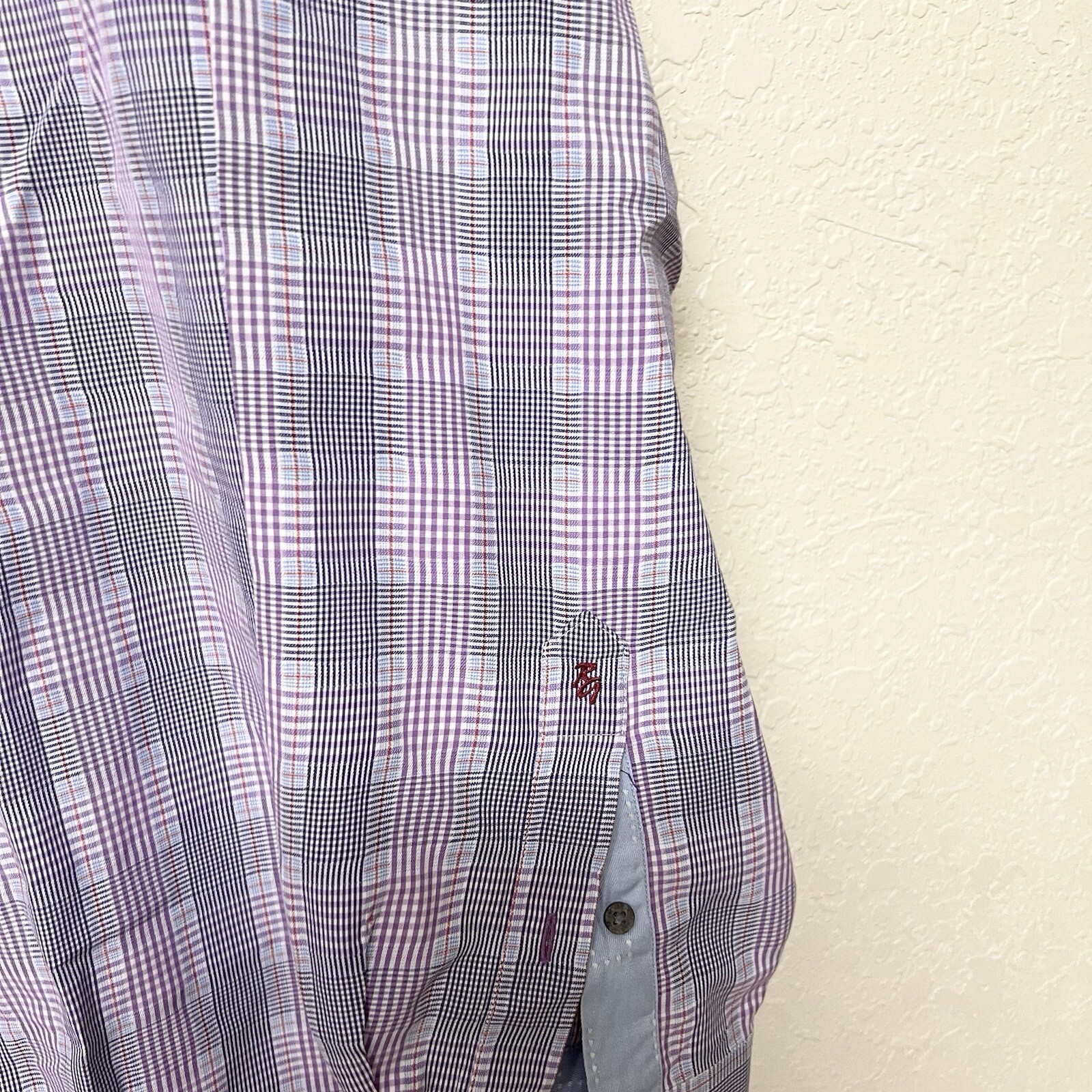 Robert Graham Dress Up Mens Button Front Shirt Purple Plaid Long Sleeve Size L