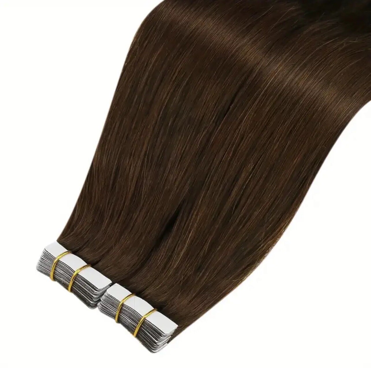 2 Chocolate Brown, Tape -In 20inch, 10pcs, 25g 100 REMY Human Hair Extensions