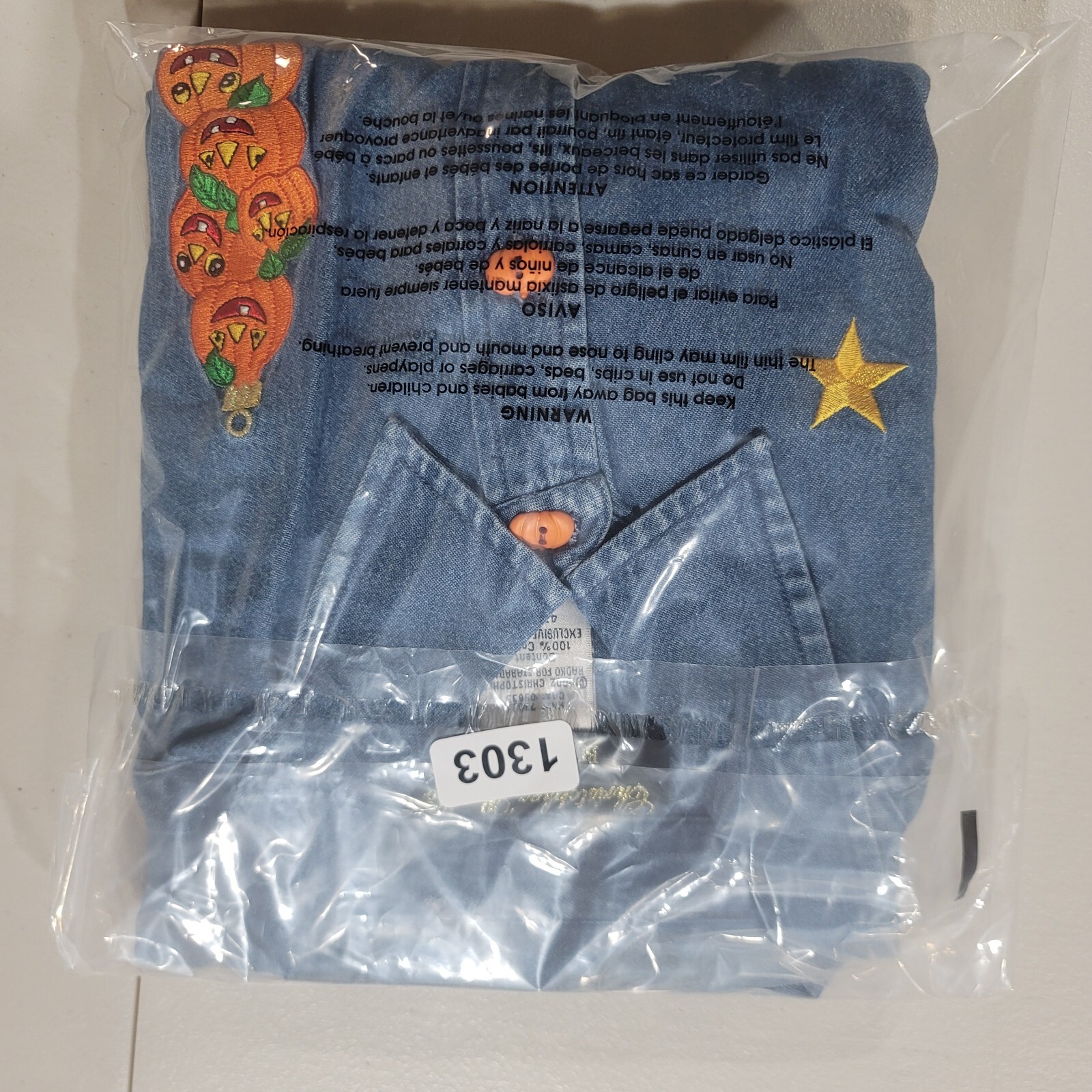 как выглядит Christopher Radko Bellepointe Halloween Pumpkin Button Denim Shirt Men