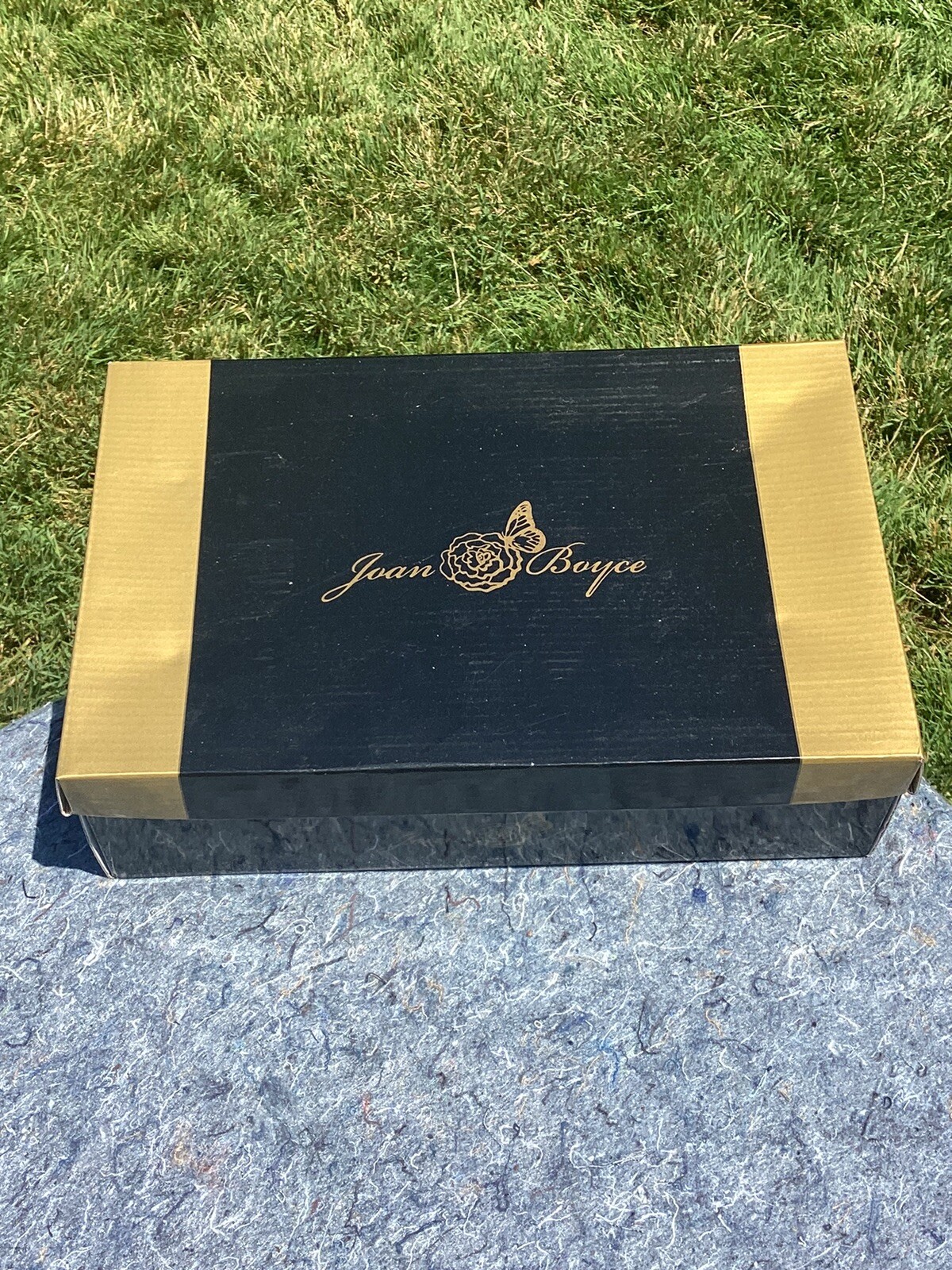 Joan Boyce Shoes. Navy 8.5M Sparkle Zip Up NEW In Box Beautiful.