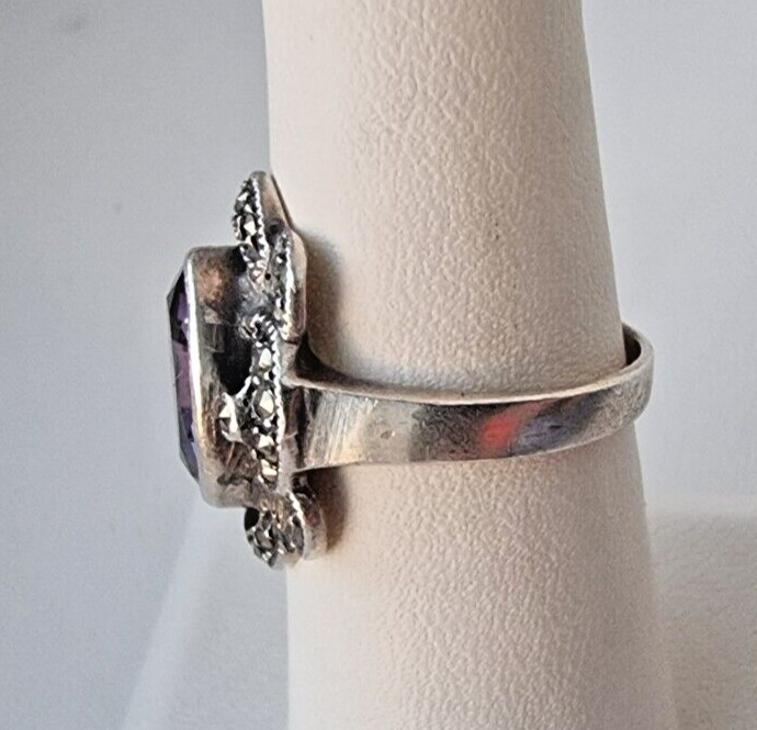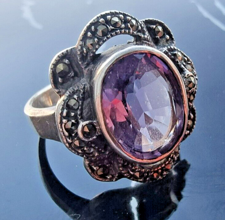 как выглядит 925 STERLING SILVER OVAL 11x9 mm. AMETHYST AND MARCASITES RING SIZE 7 фото