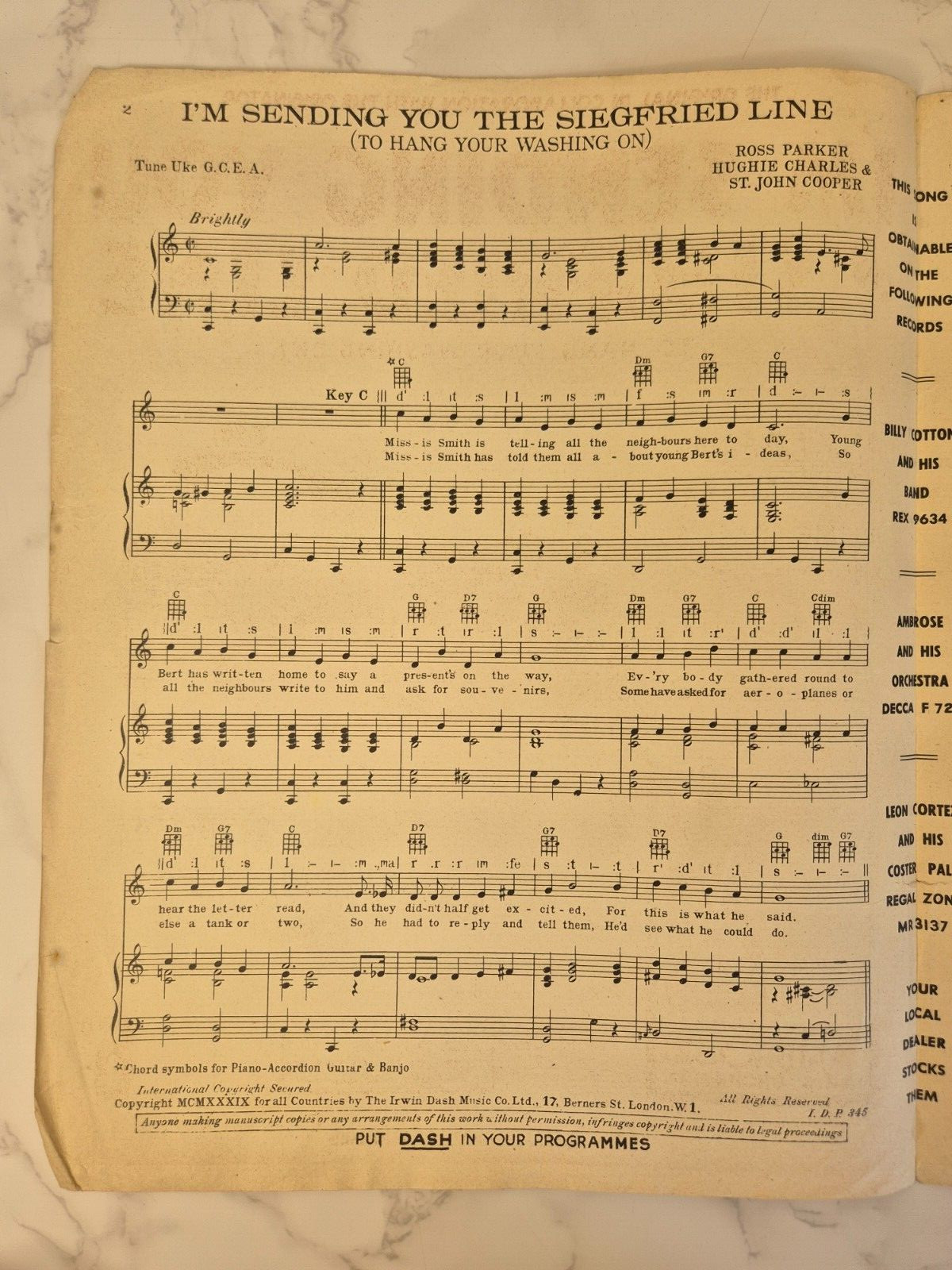 I'm sending you the Siegfried Line Ross Parker , Hughie Charles 1939 Vintage Mus