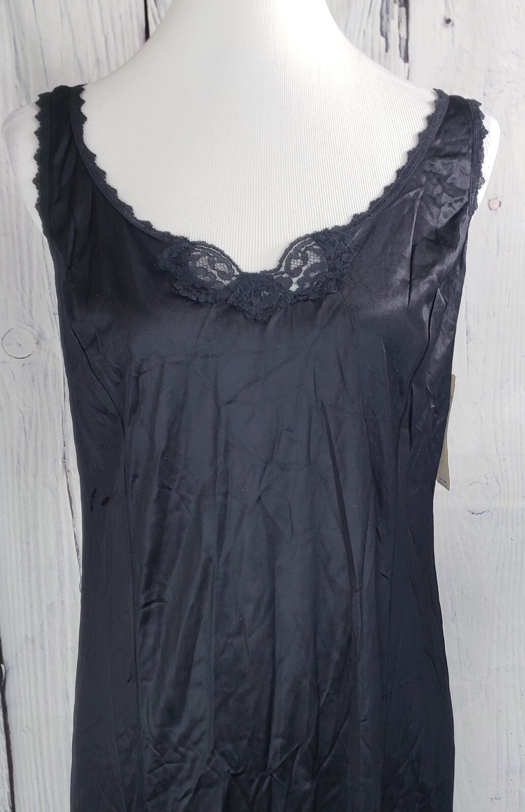 как выглядит VTG Nancy King Lingerie Dress Full Slip Lace Nylon Nightgown 2153 Black Size 34 фото
