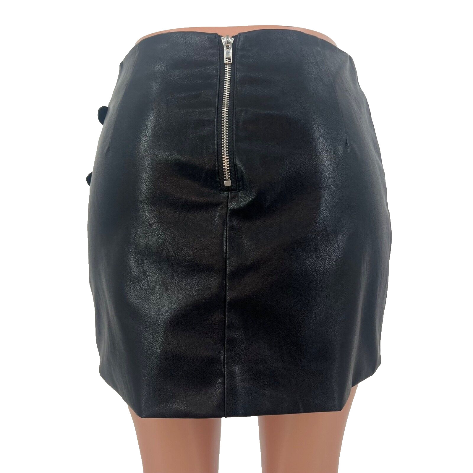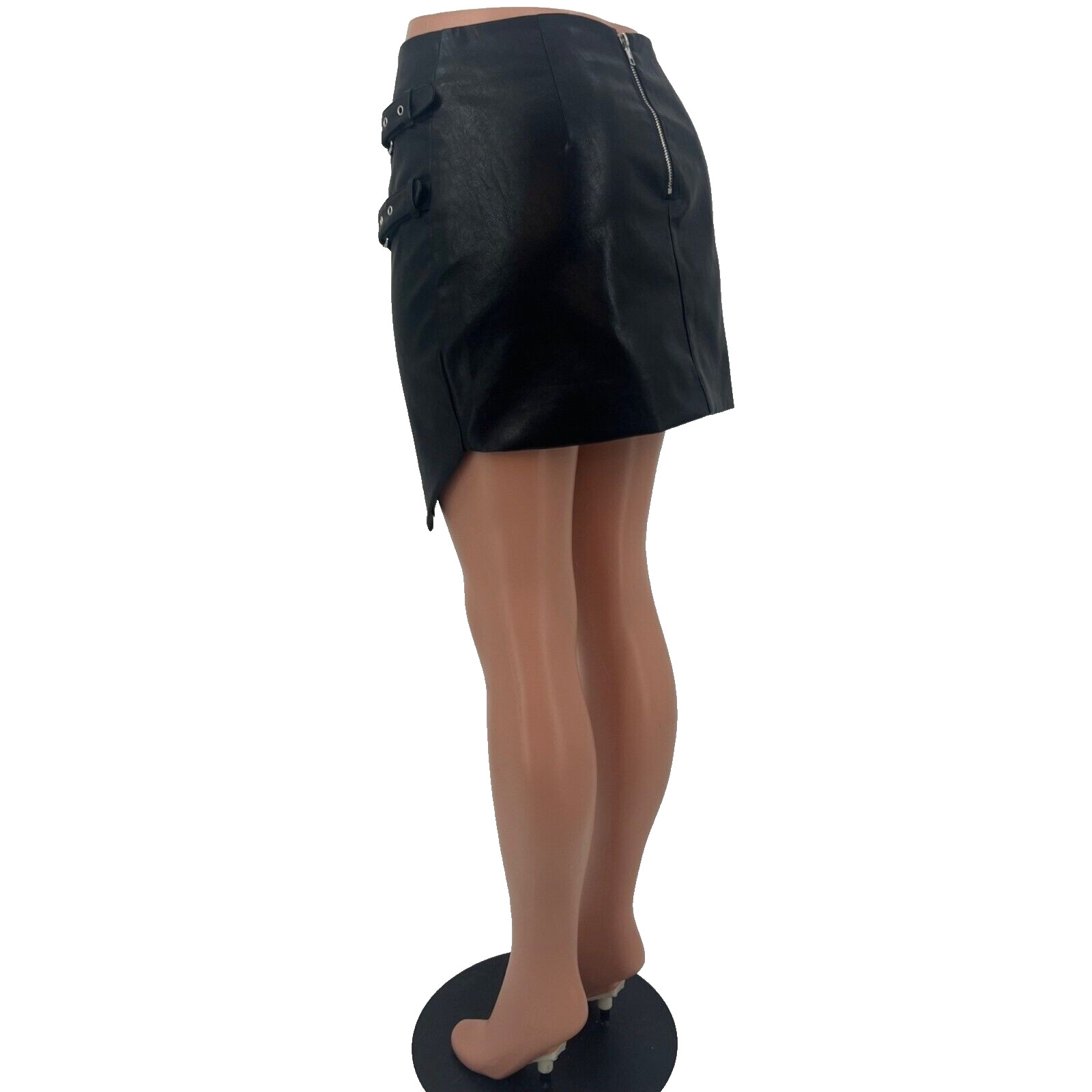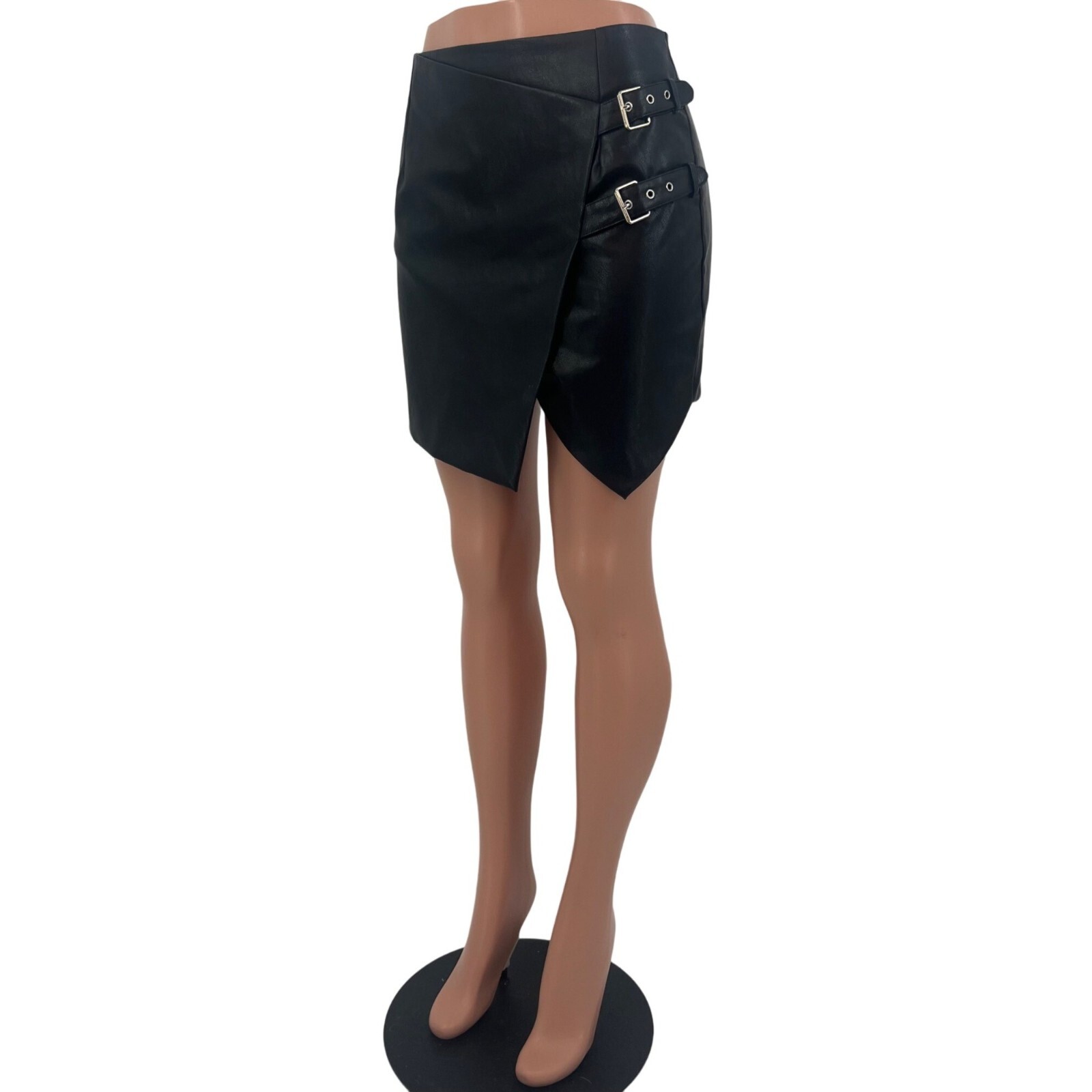 Vegan Leather Black Asymmetrical Buckled Mini Skirt