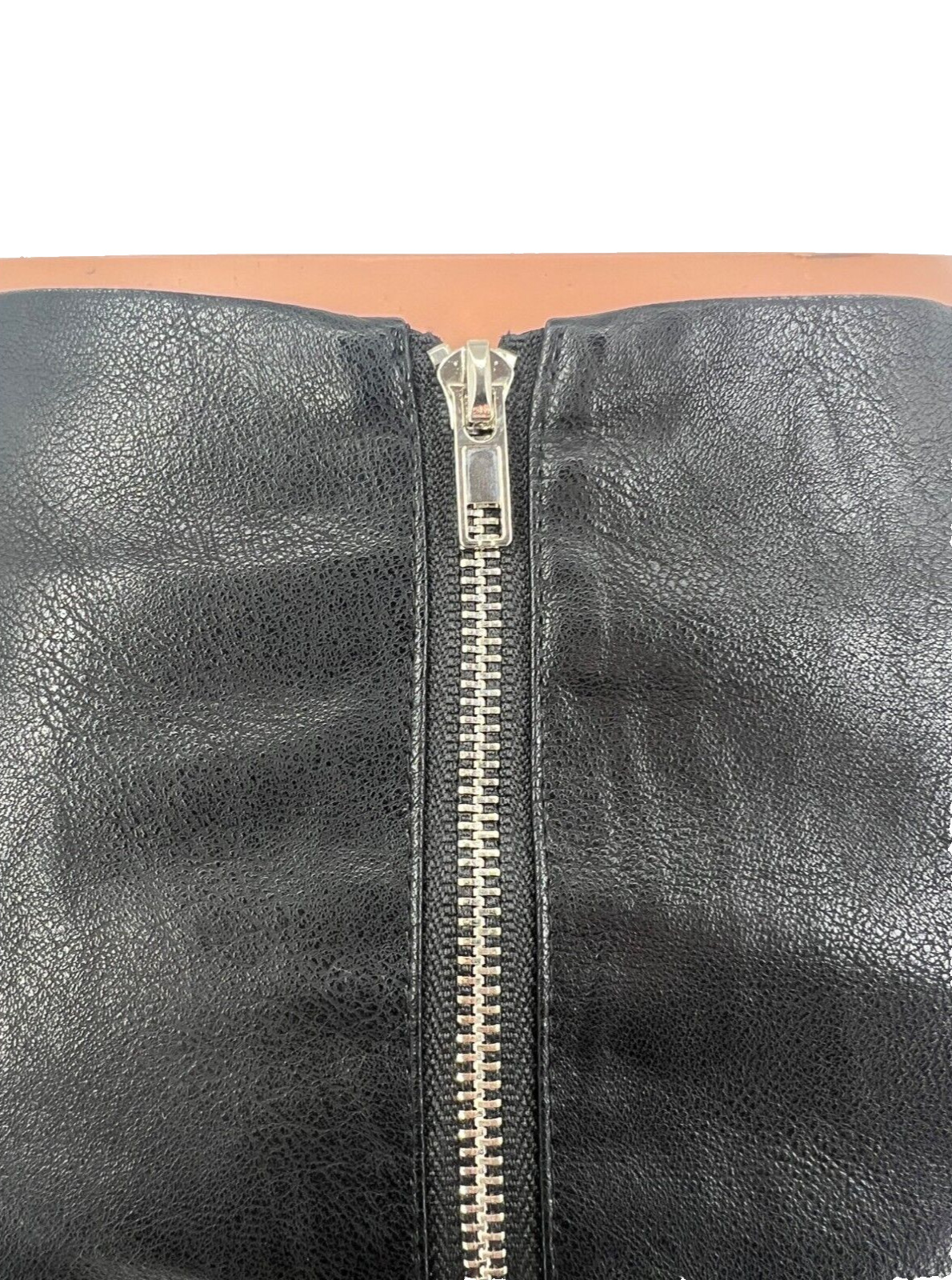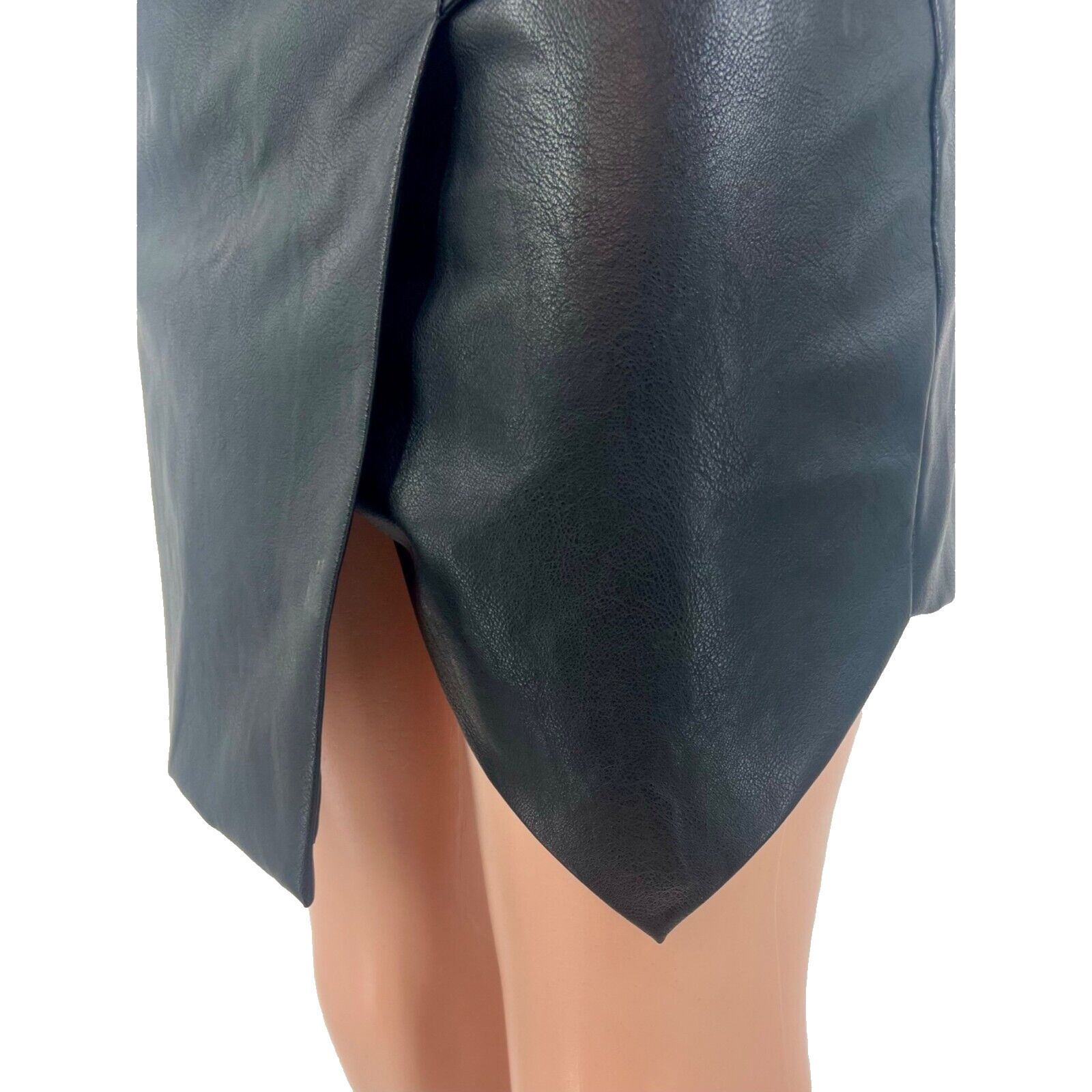 как выглядит Vegan Leather Black Asymmetrical Buckled Mini Skirt фото