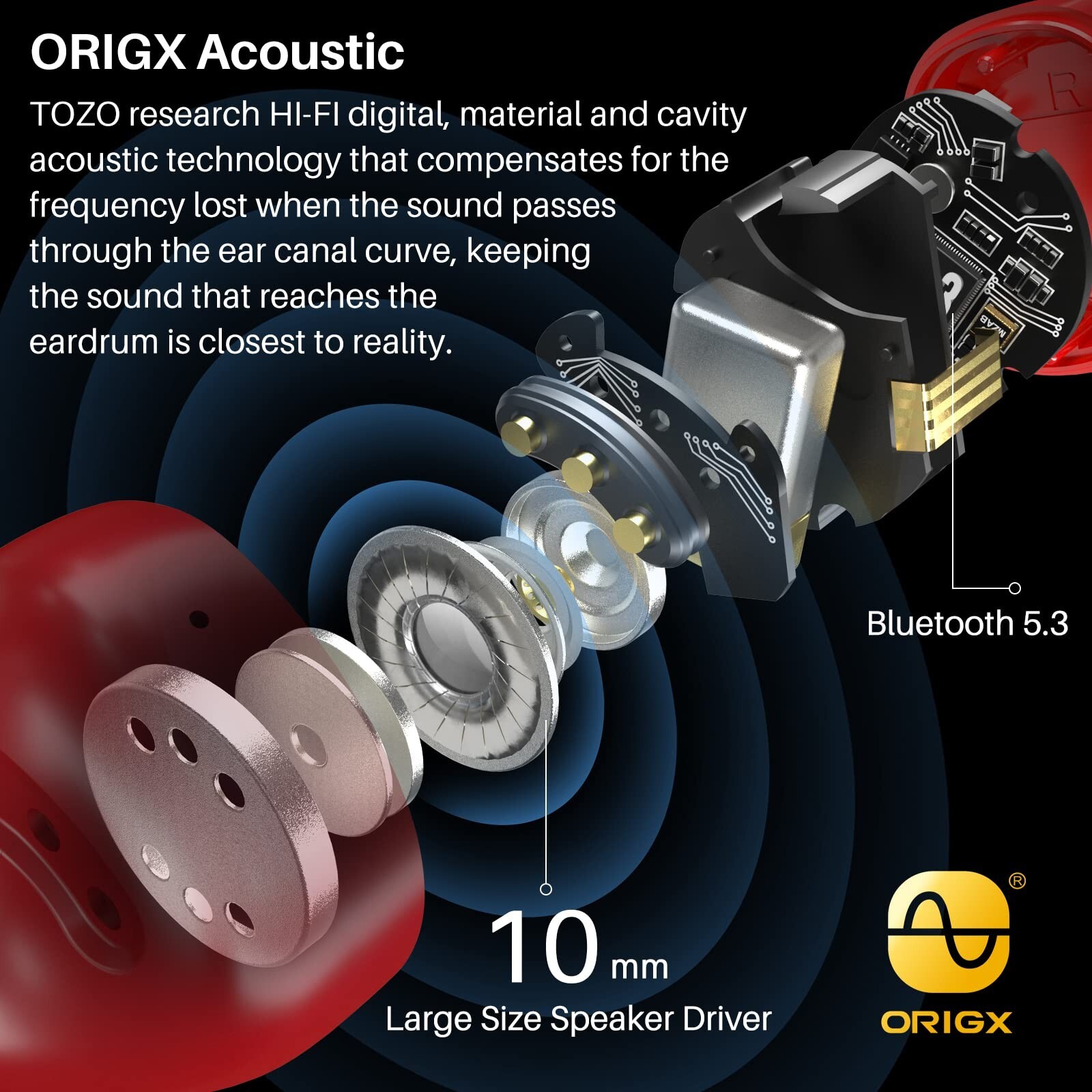 TOZO T12 Wireless Earbuds In Ear Stereo Headphones IPX8 Waterproof Red