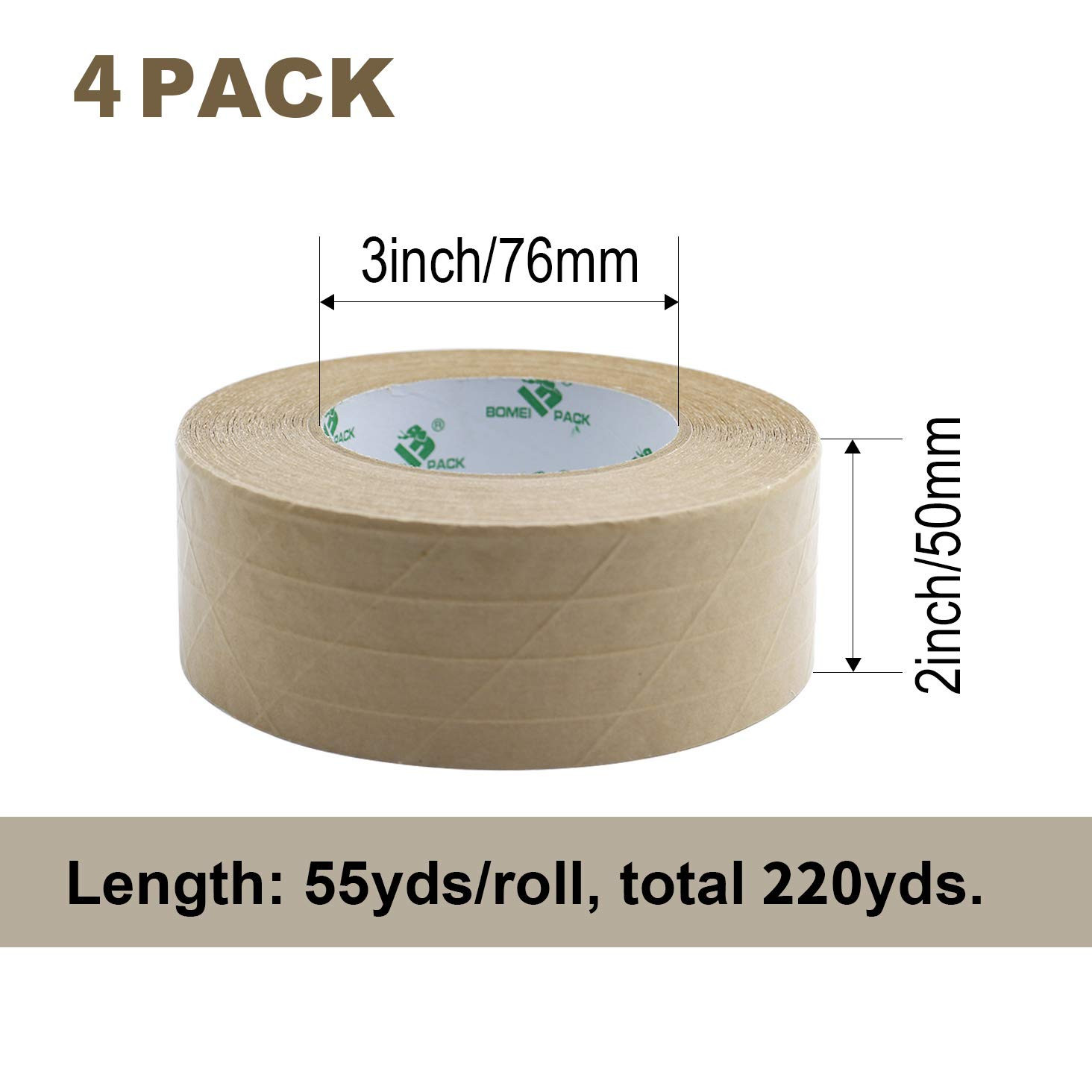 4Rolls Self Adhesive Reinforced Kraft Packing Paper Tape, 2Inch 55Yds, Total...