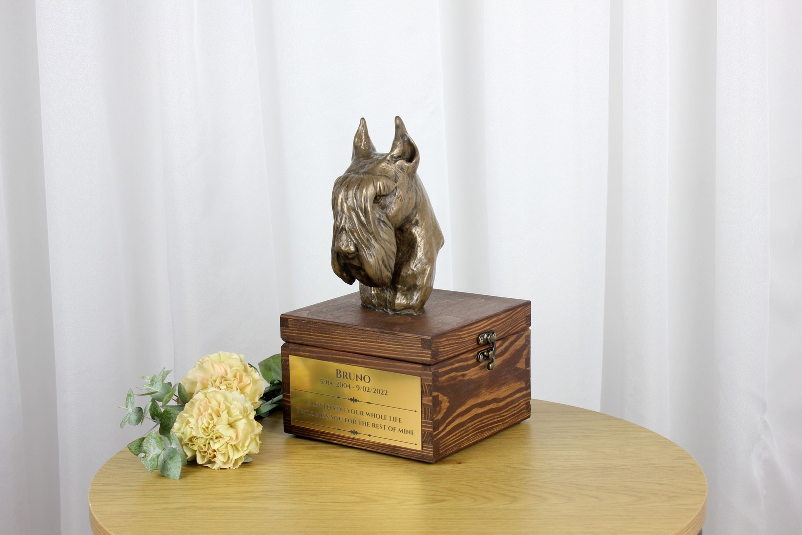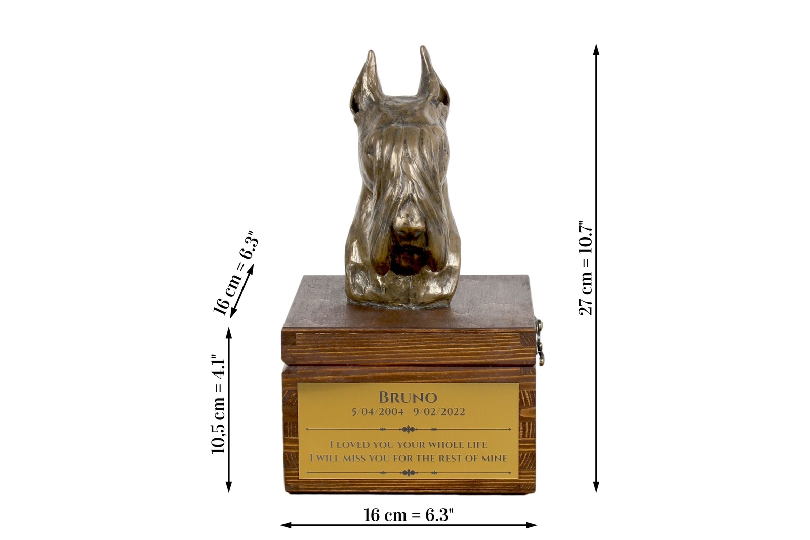 • Schnauzer I - urn for dog ashes with a statuette, small urn for a dog, personali