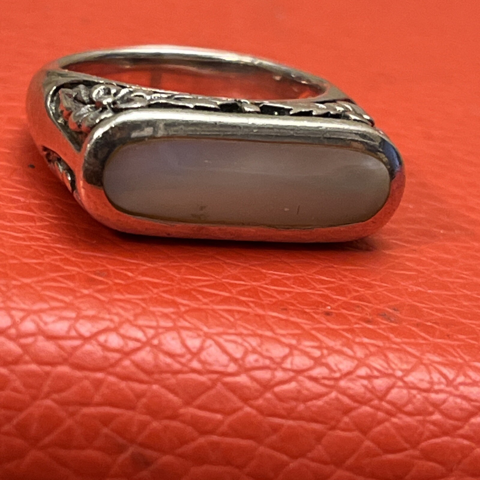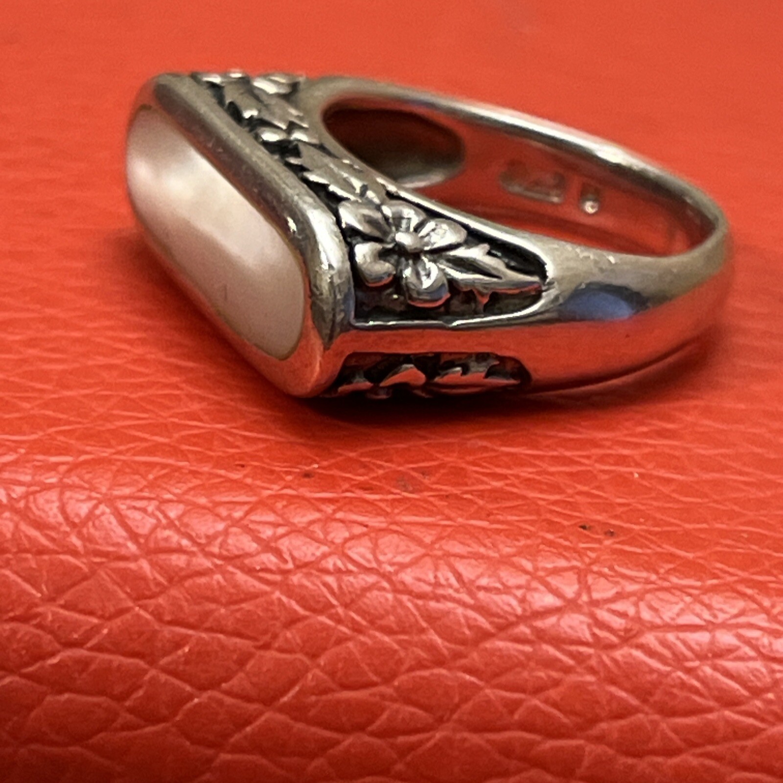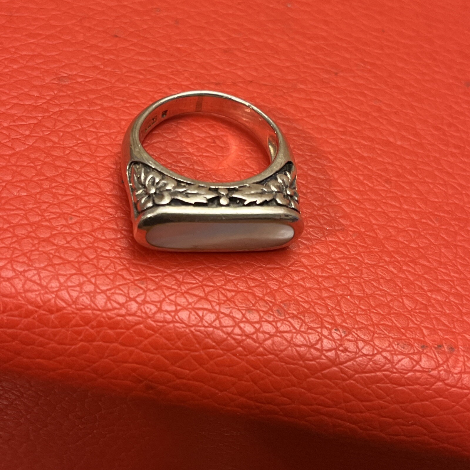как выглядит .925 Silver Moonstone freeform ring size 6 with flowers leaves фото