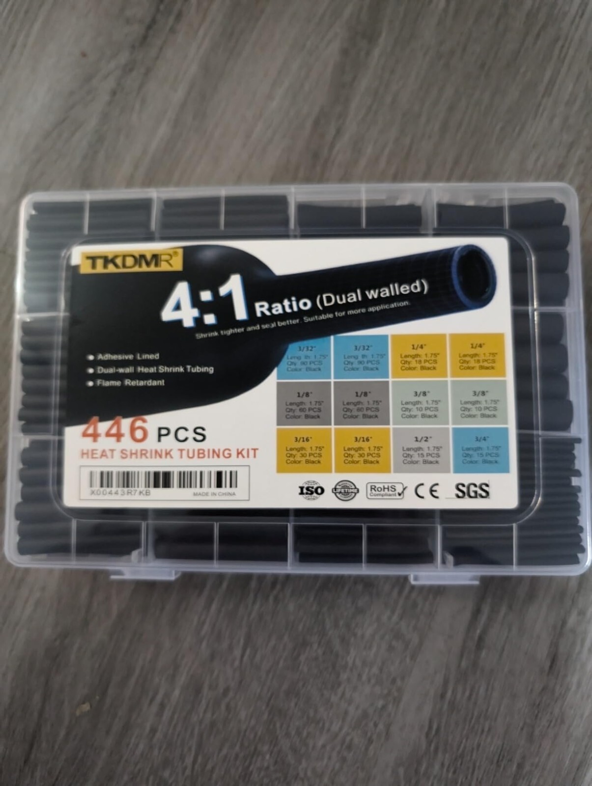 446 Pcs Heat Shrink Tubing Kit 4:1 Ratio Adhesive Lined Marine Grade Shrink Wrap