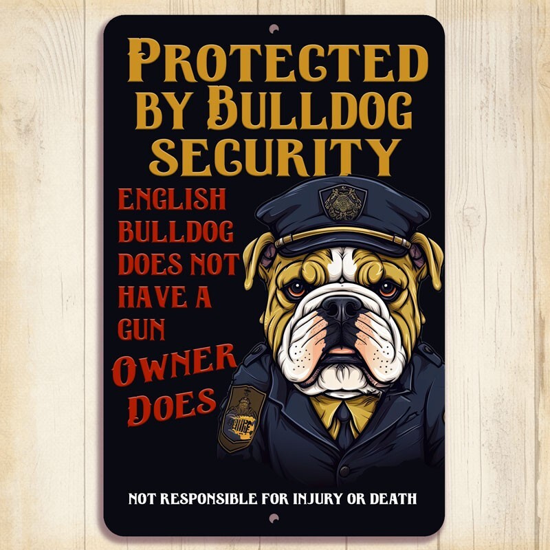 как выглядит English Bulldog Security Sign Guard Protected bull dog outdoor funny metal tin фото