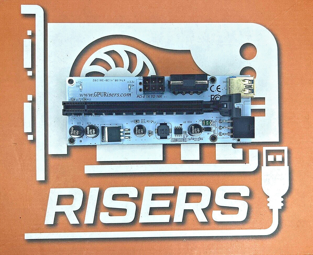 GPU Risers - PCI-E 1x to 16x Powered USB3.0 - White - 8 Pack