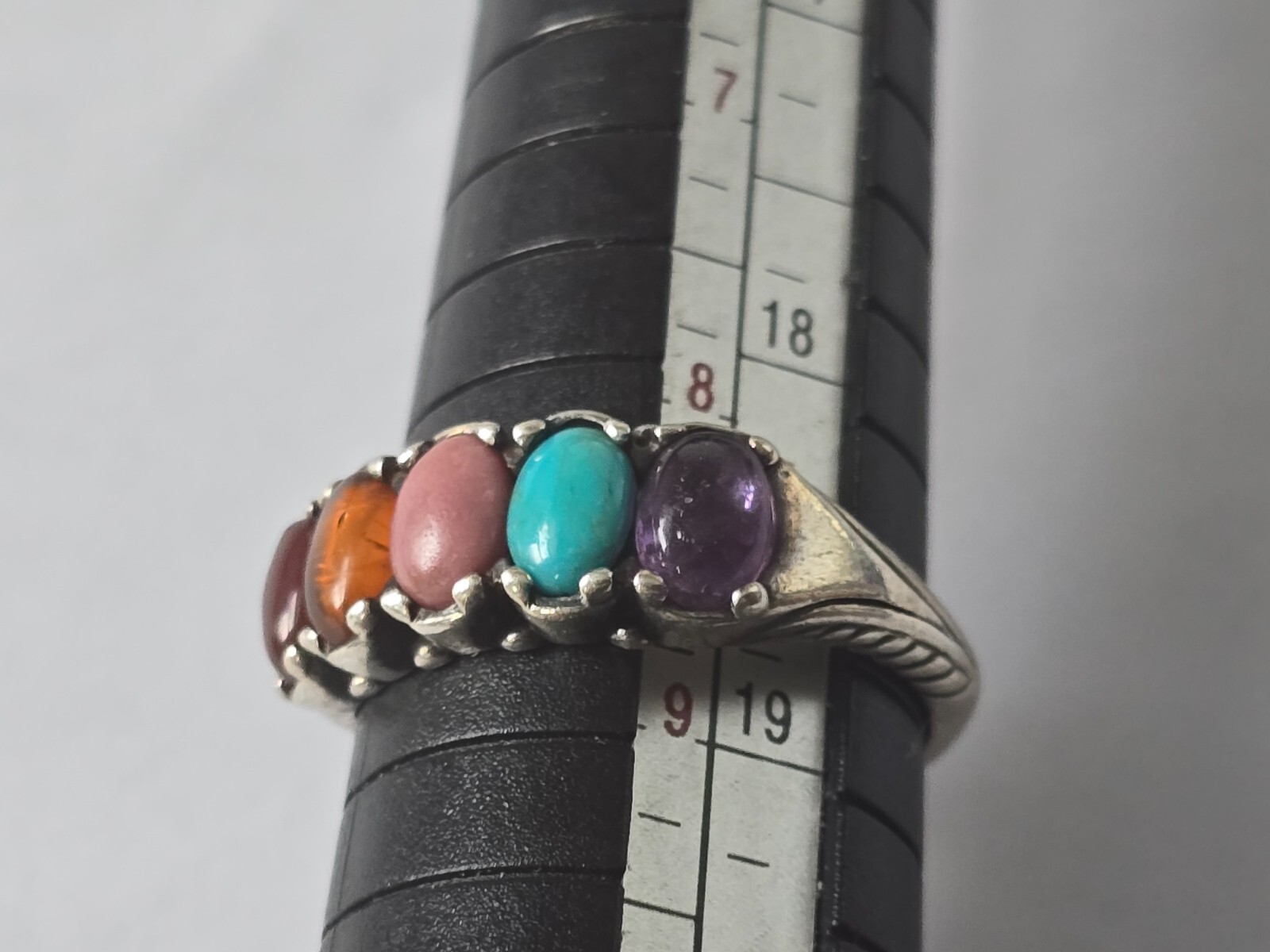 как выглядит Beautiful Designer Signed Southwest Sterling Silver Multi Gemstone Ring Size 9 фото
