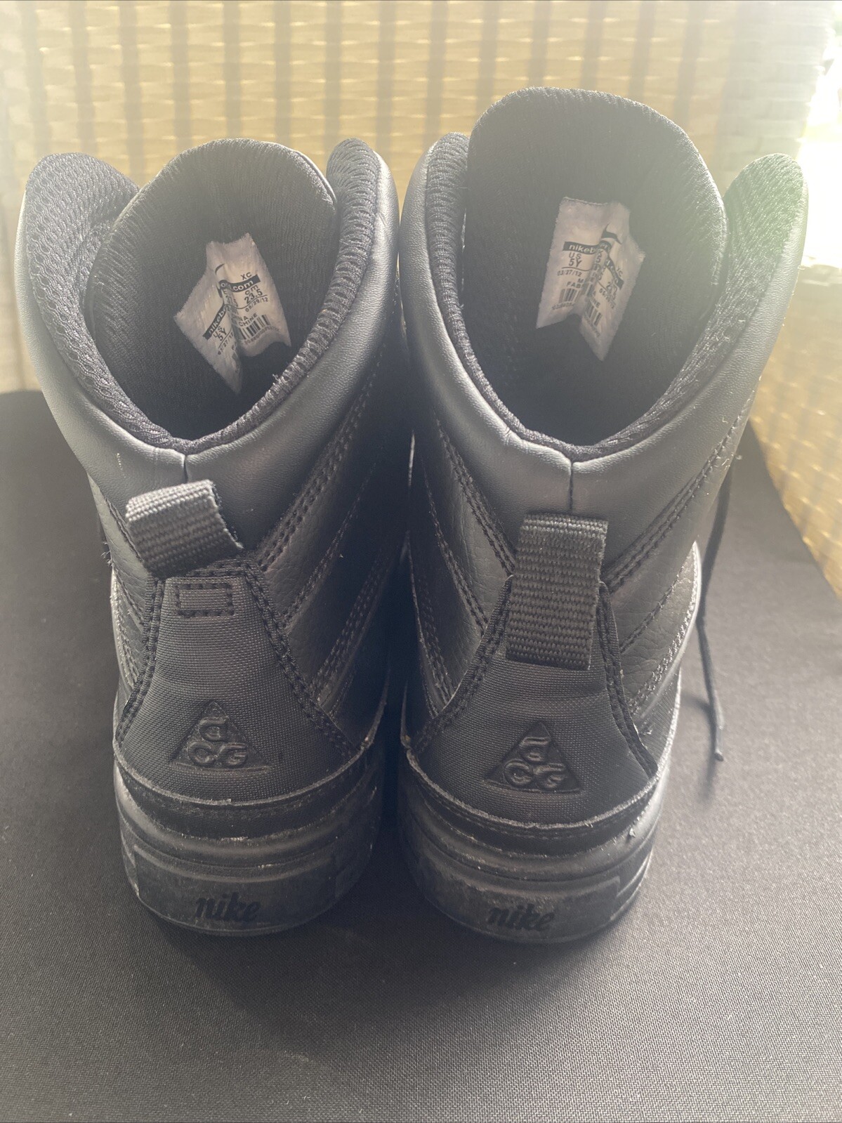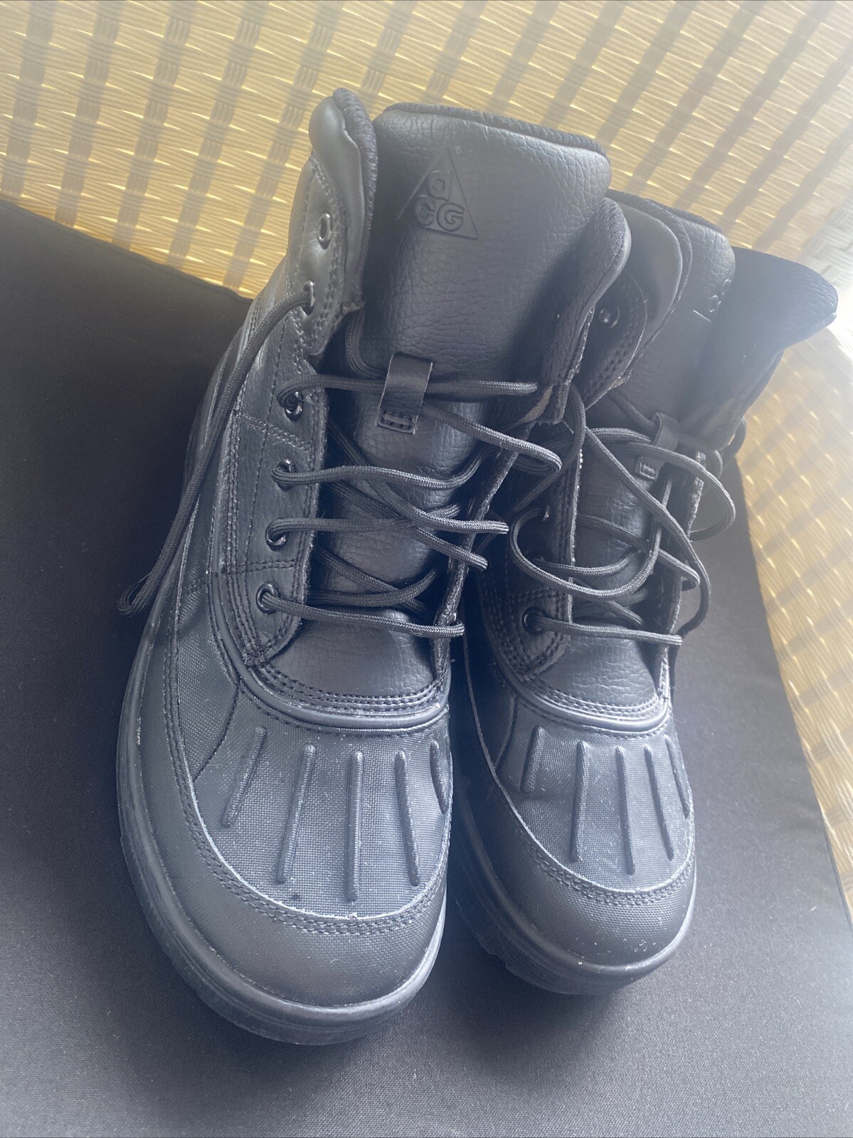 как выглядит Nike Woodside 2 High ACG Boys Solid Black Lace Up Boots 524872-001 Size 5Y Mint фото