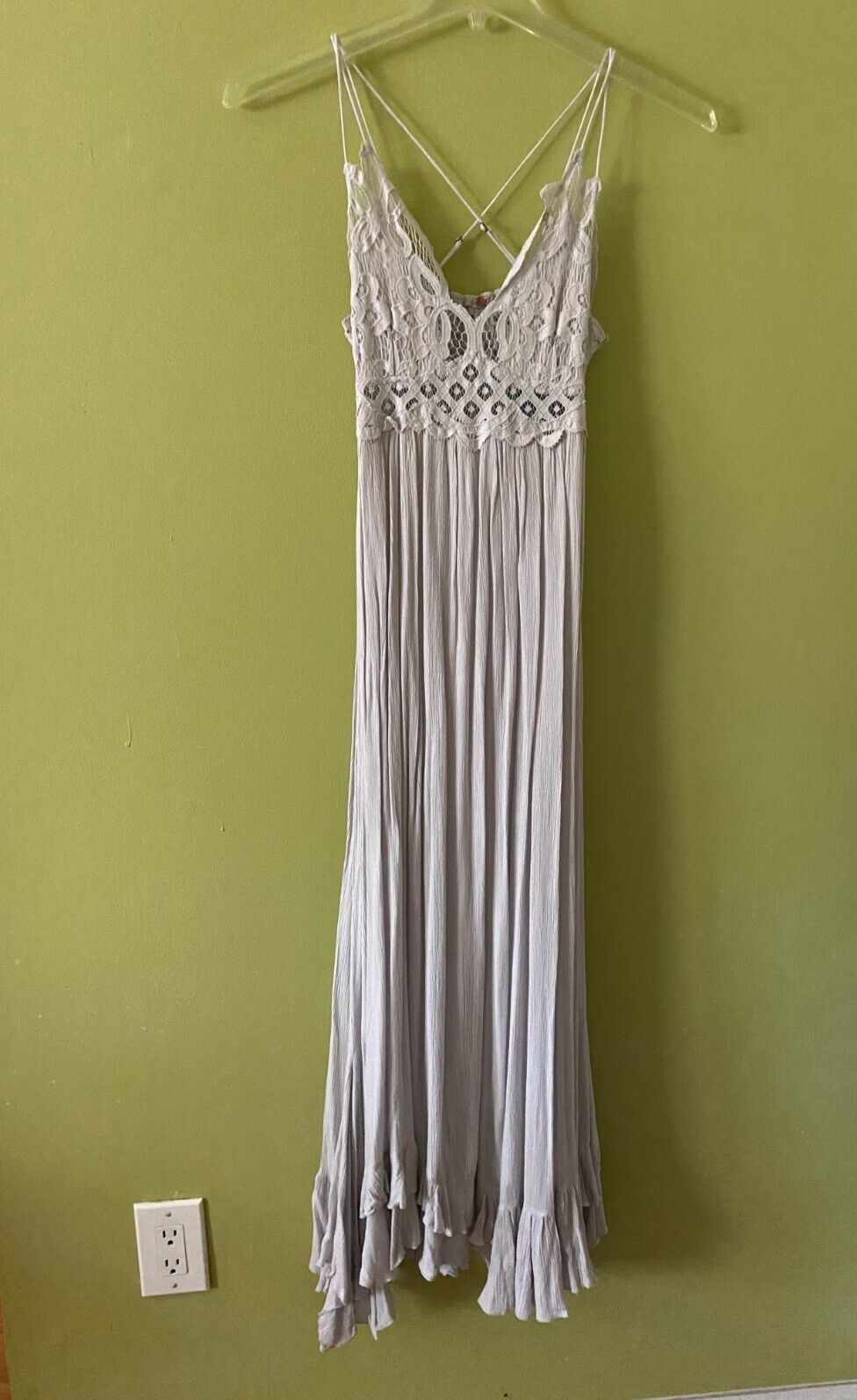 как выглядит Free People Adella Maxi Slip Dress Stardust Crochet Lace Smocked Flowy Size S фото