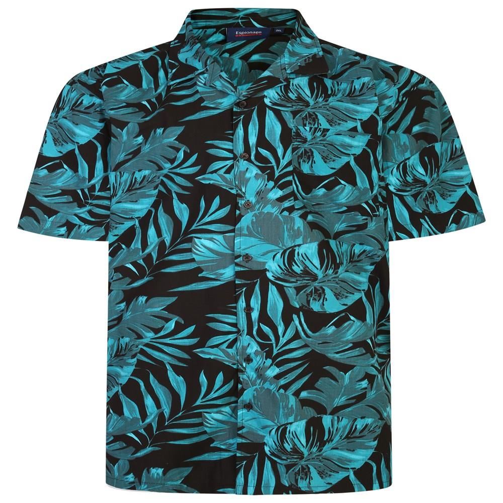 как выглядит Espionage SH391 Mens Plus Size Rever Habiscus Print Shirt in Black 2XL to 8XL фото