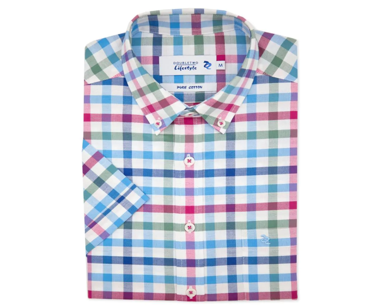 DOUBLE TWO BLUE RED LARGE GINGHAM CHECK SHORT SLEEVE CASUAL SHIRT