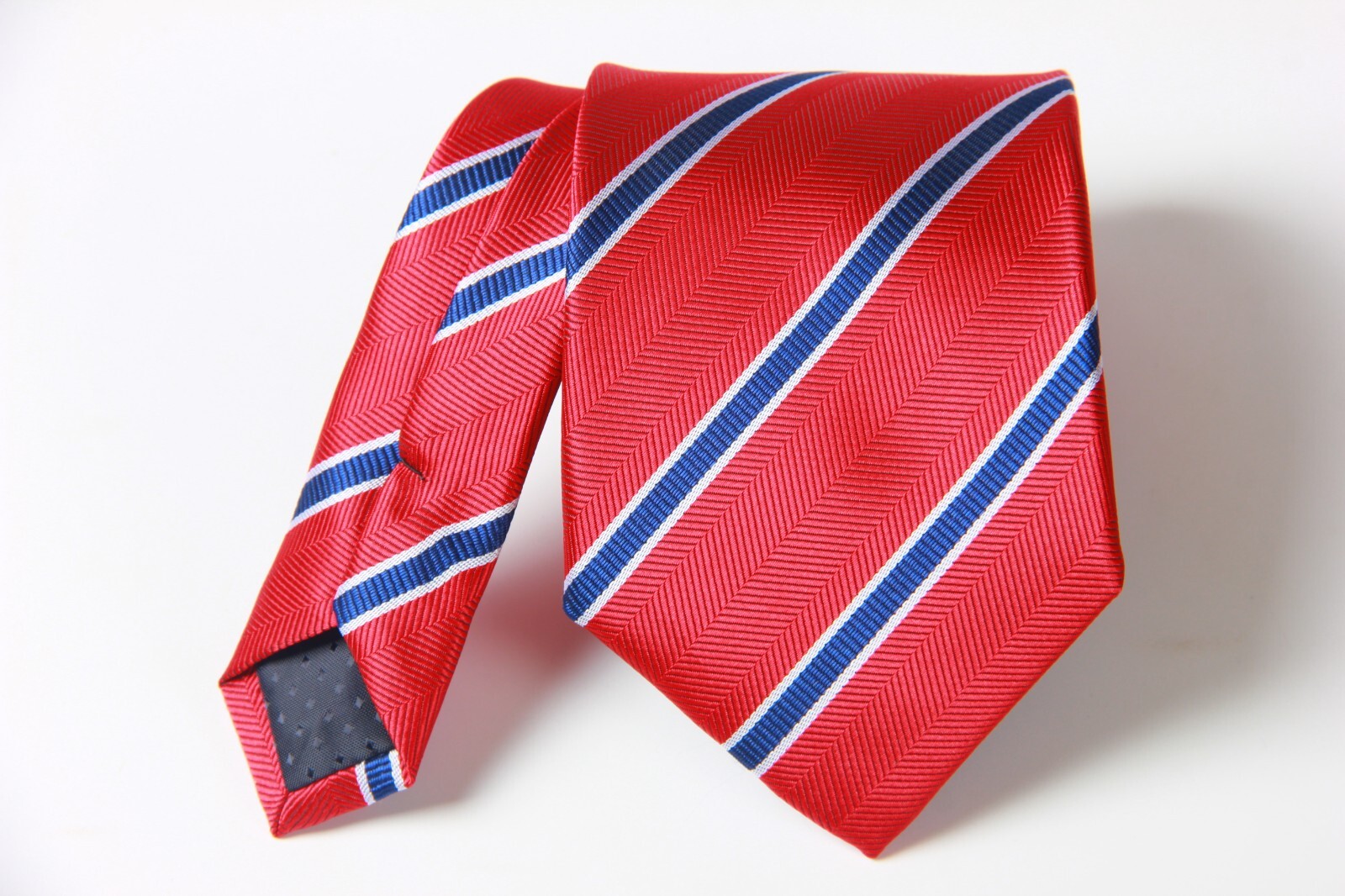 как выглядит New Classic Striped Red Blue JACQUARD WOVEN 100 Silk Men