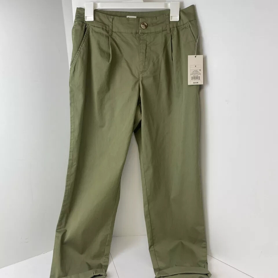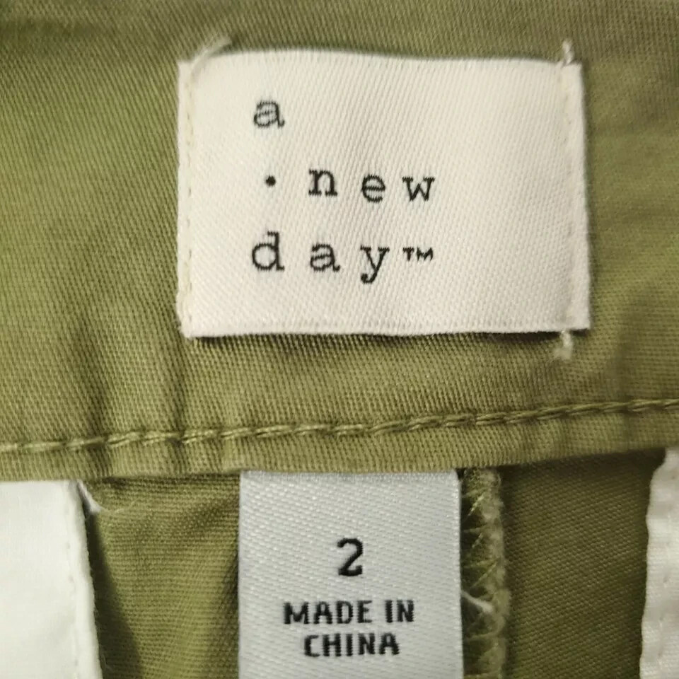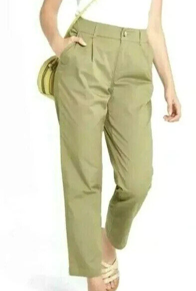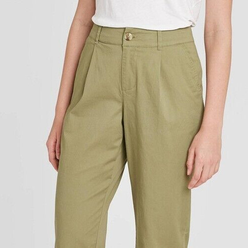 как выглядит Womens High-Rise Pleat Front Straight Leg Ankle Pants - A New Day Olive Size 2 фото