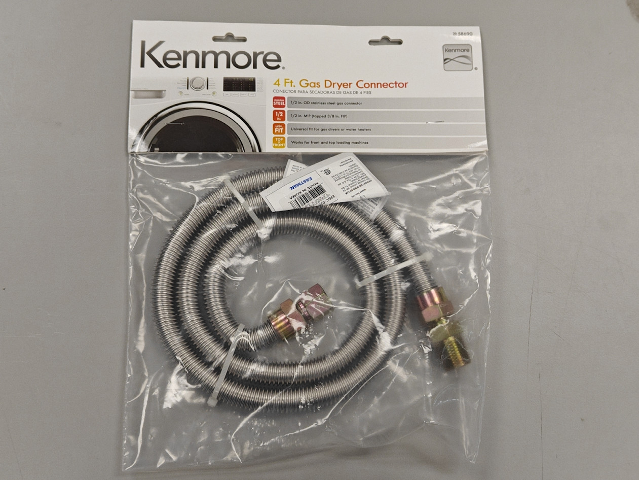 Kenmore 58690 4FT Gas Dryer/Water Heater Connector - 1/2 In. MIP x 3/8 In. FIP