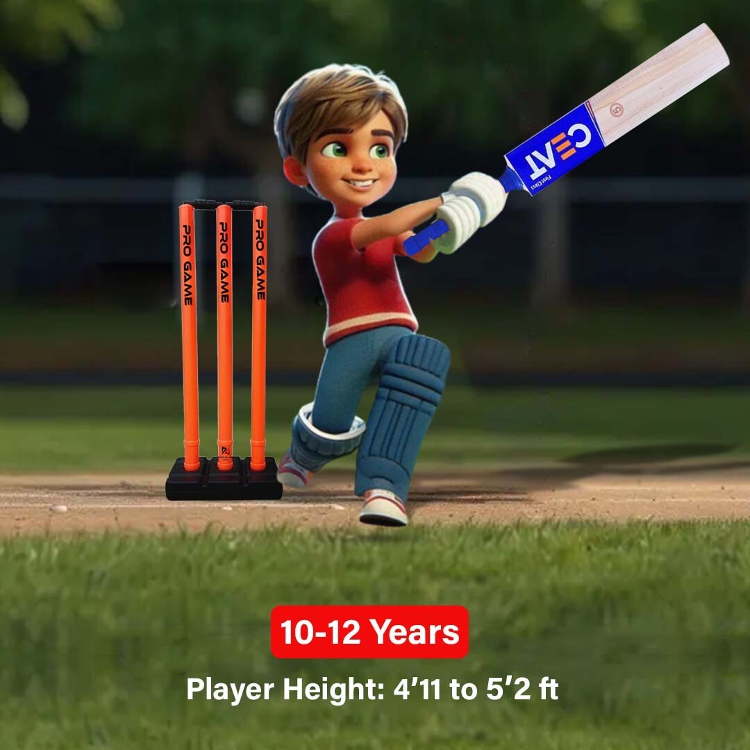 Pro Game Cricket Bat with PVC ORG Wicket Set 1 Tennis Ball For 10-12 Years