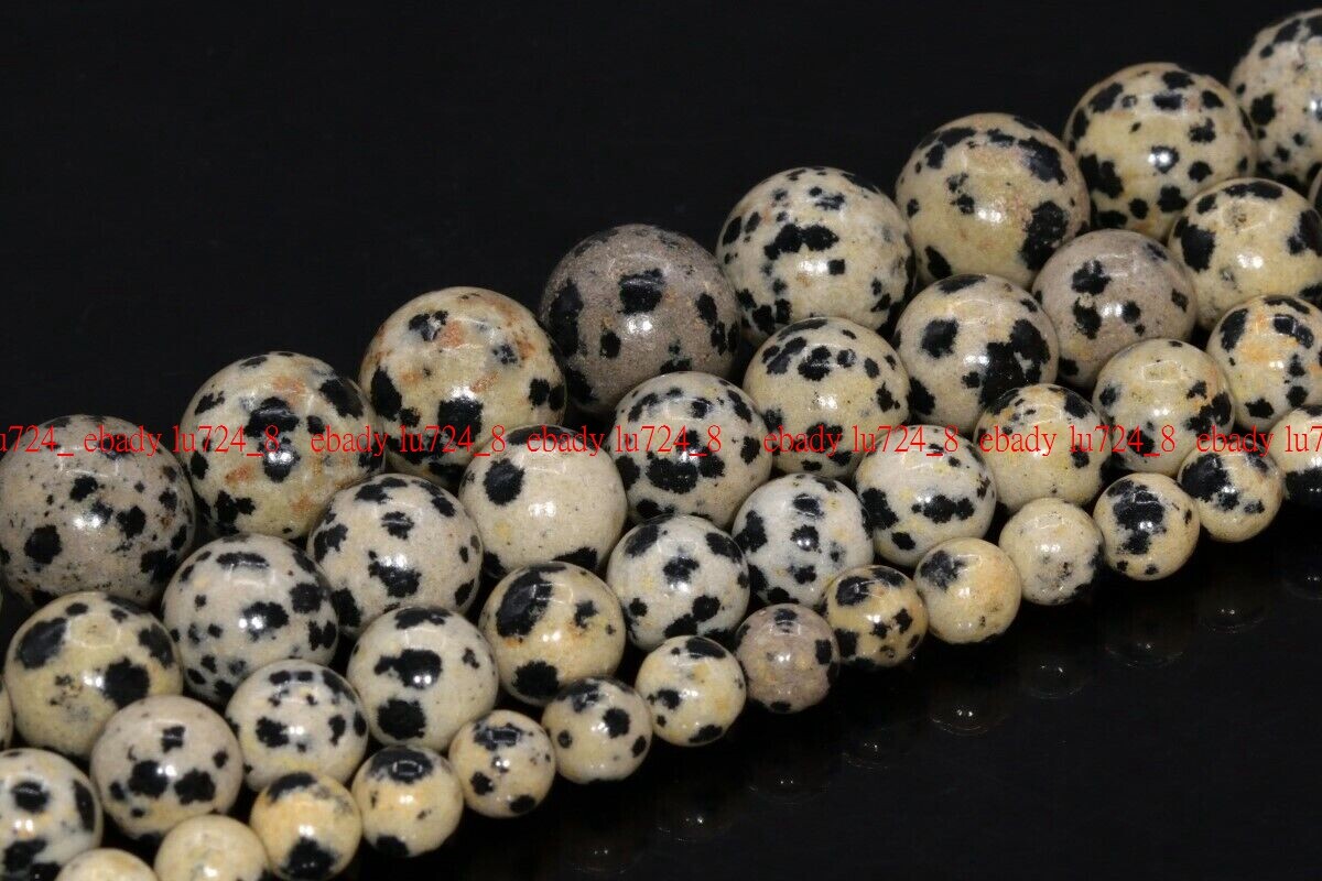 Natural Black White Dalmatian Jasper Round Gemstone Loose Beads 6/8/10/12mm 15