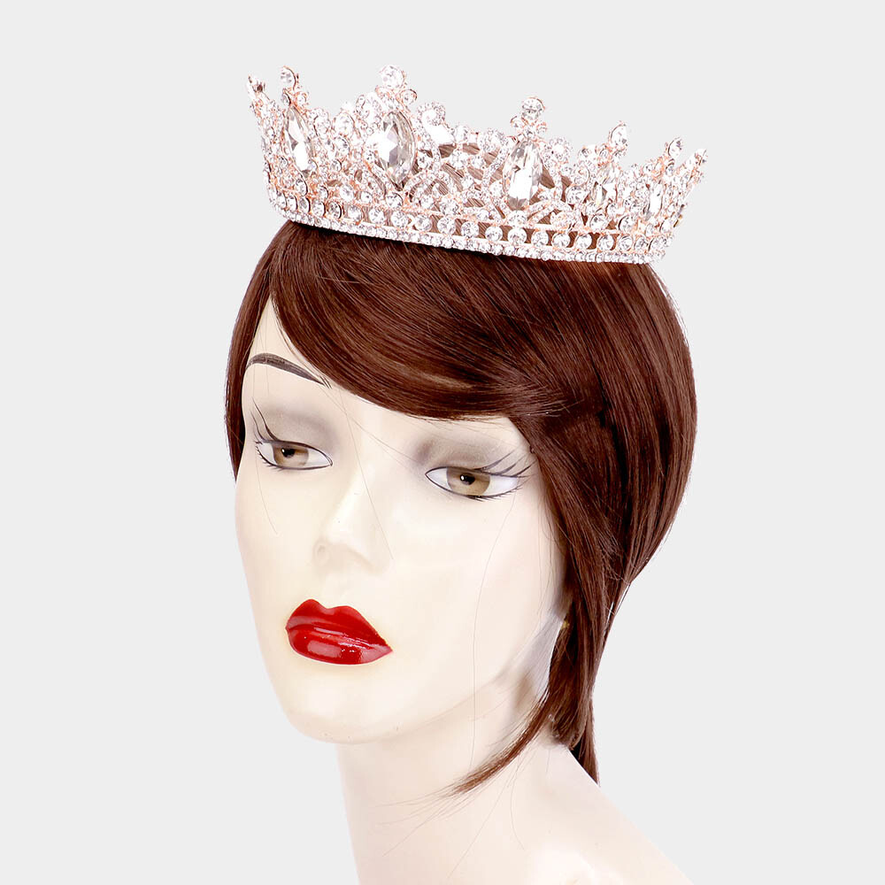 Round Long Tiara Crystal Rhinestone Princess Wedding Queen Bridal Crown Teardrop