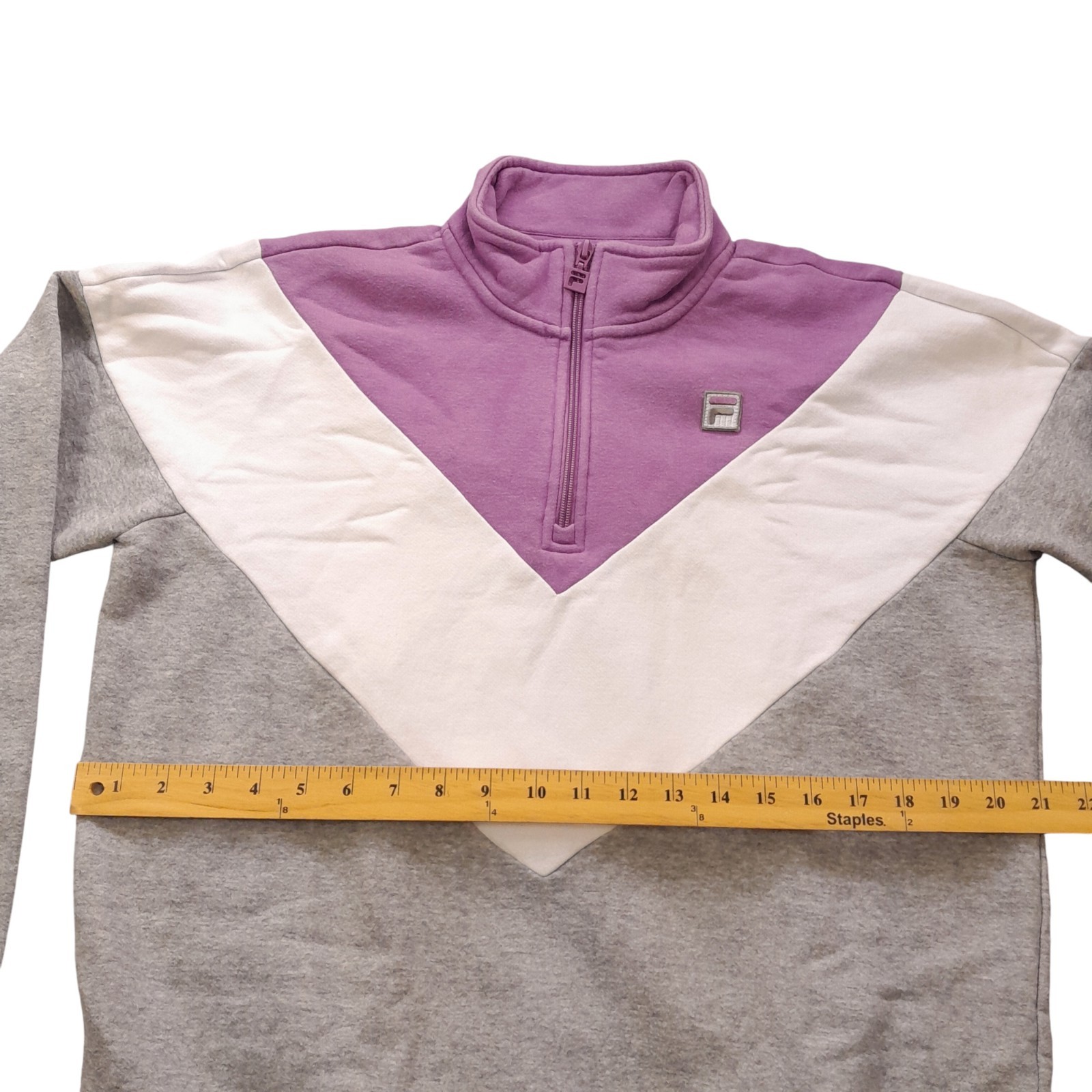 FILA sweatshirt Women L/3 color block pattern/1/4 zip/long sleeves/knit fleece
