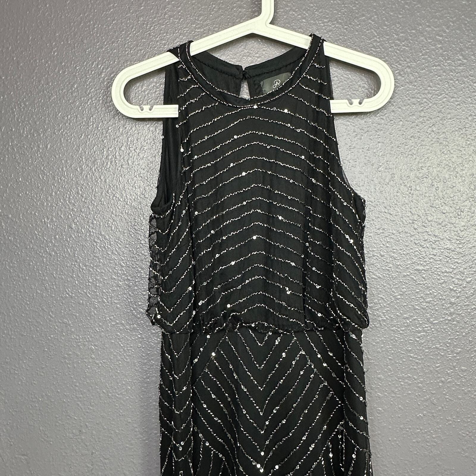 Adrianna Papell Madigan Beaded Blouson Halter Dress 10 Black NEW