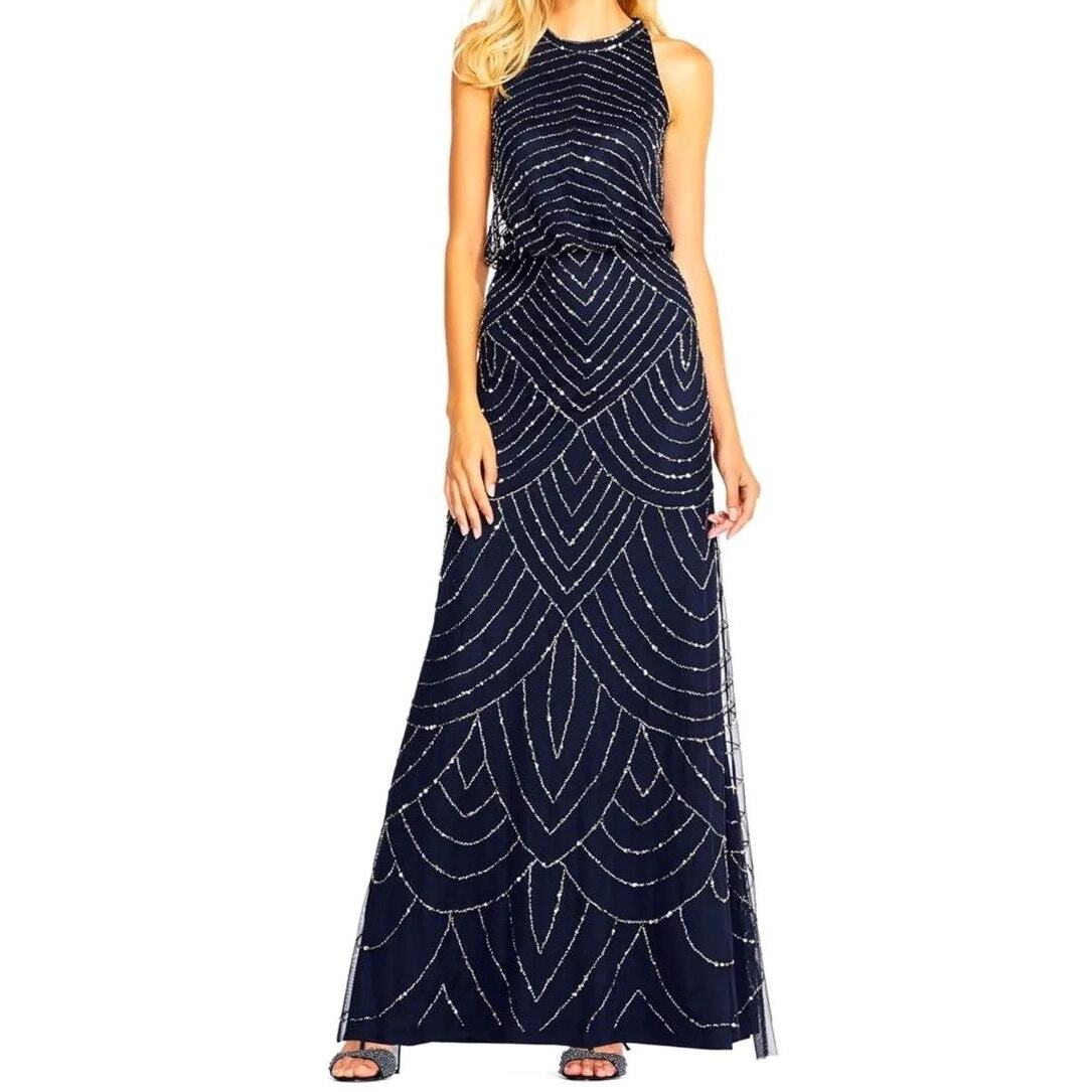 как выглядит Adrianna Papell Madigan Beaded Blouson Halter Dress 10 Black NEW фото