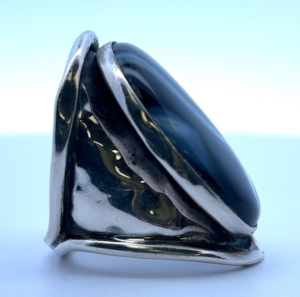 как выглядит Vintage Large Sterling Silver Black Agate Natural Banded Ring 15.6 Grams Size-8 фото