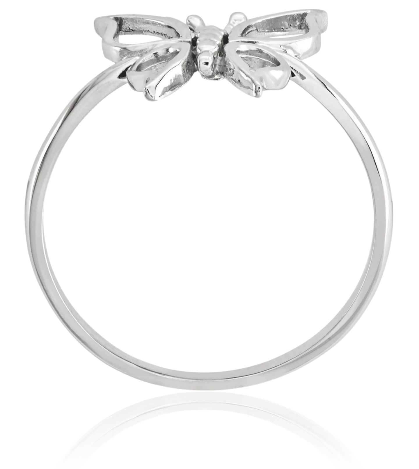 14K Solid White Gold Butterfly Statement Ring
