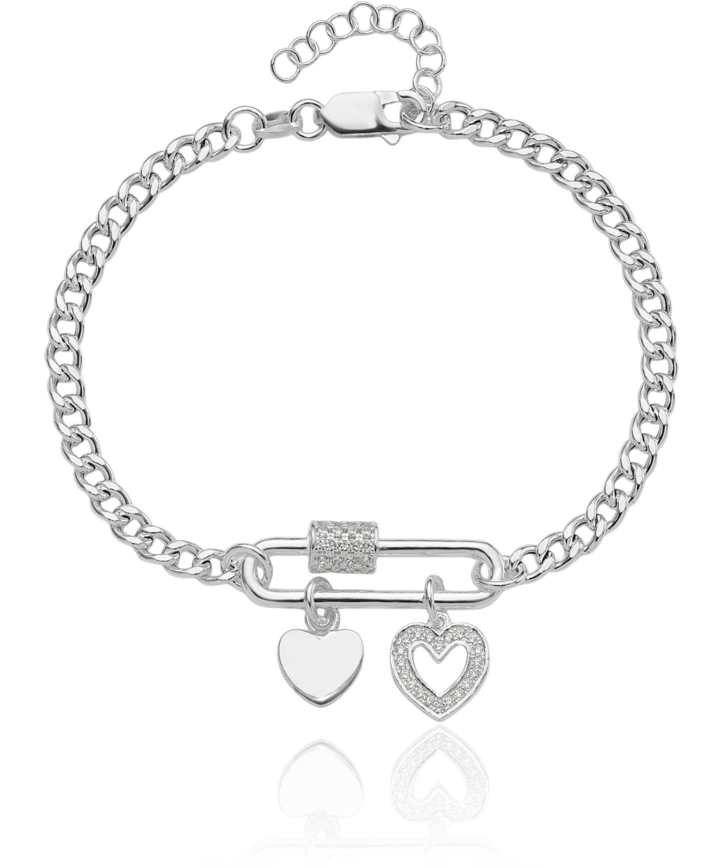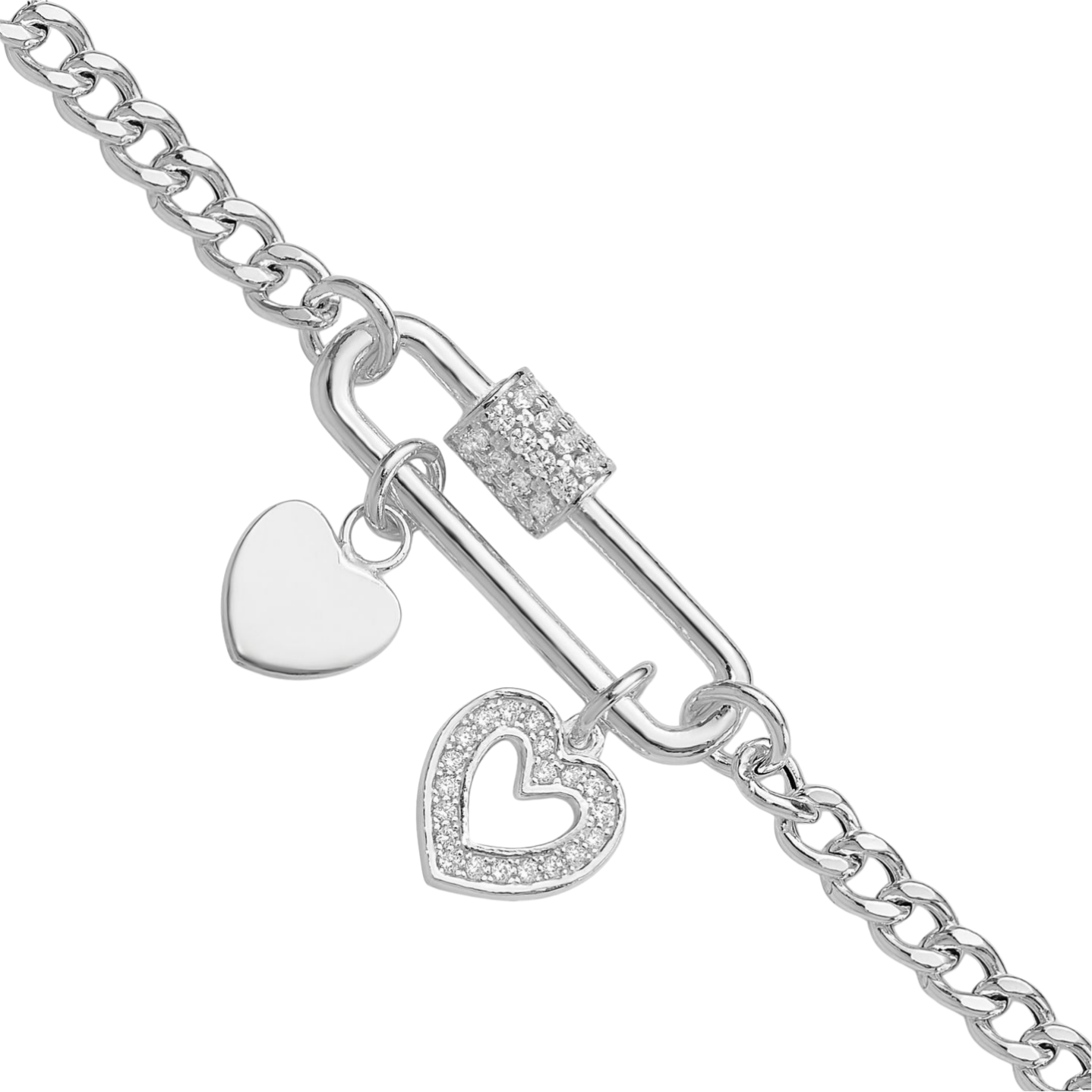 925 Sterling Silver Dangling CZ Heart Charm Bracelet