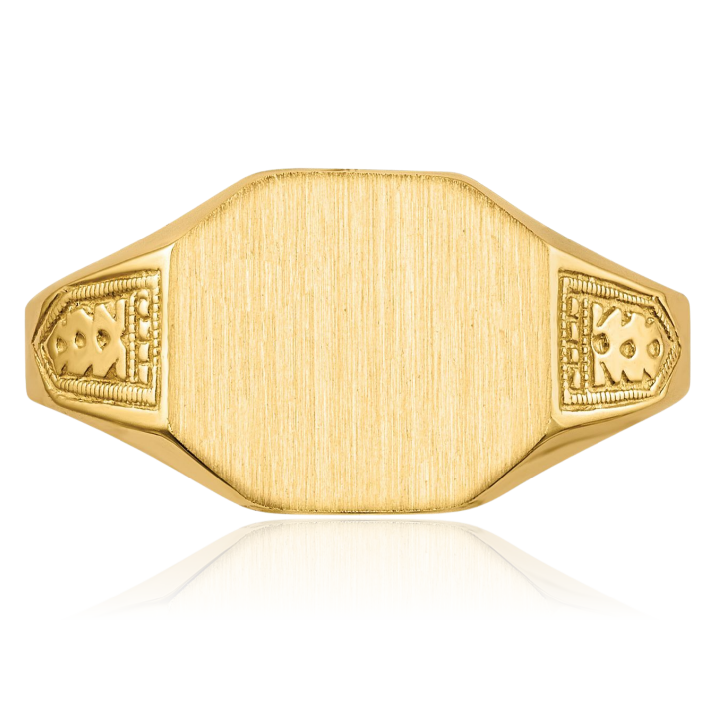 10K Solid Yellow Gold Custom Engraved Signet Ring