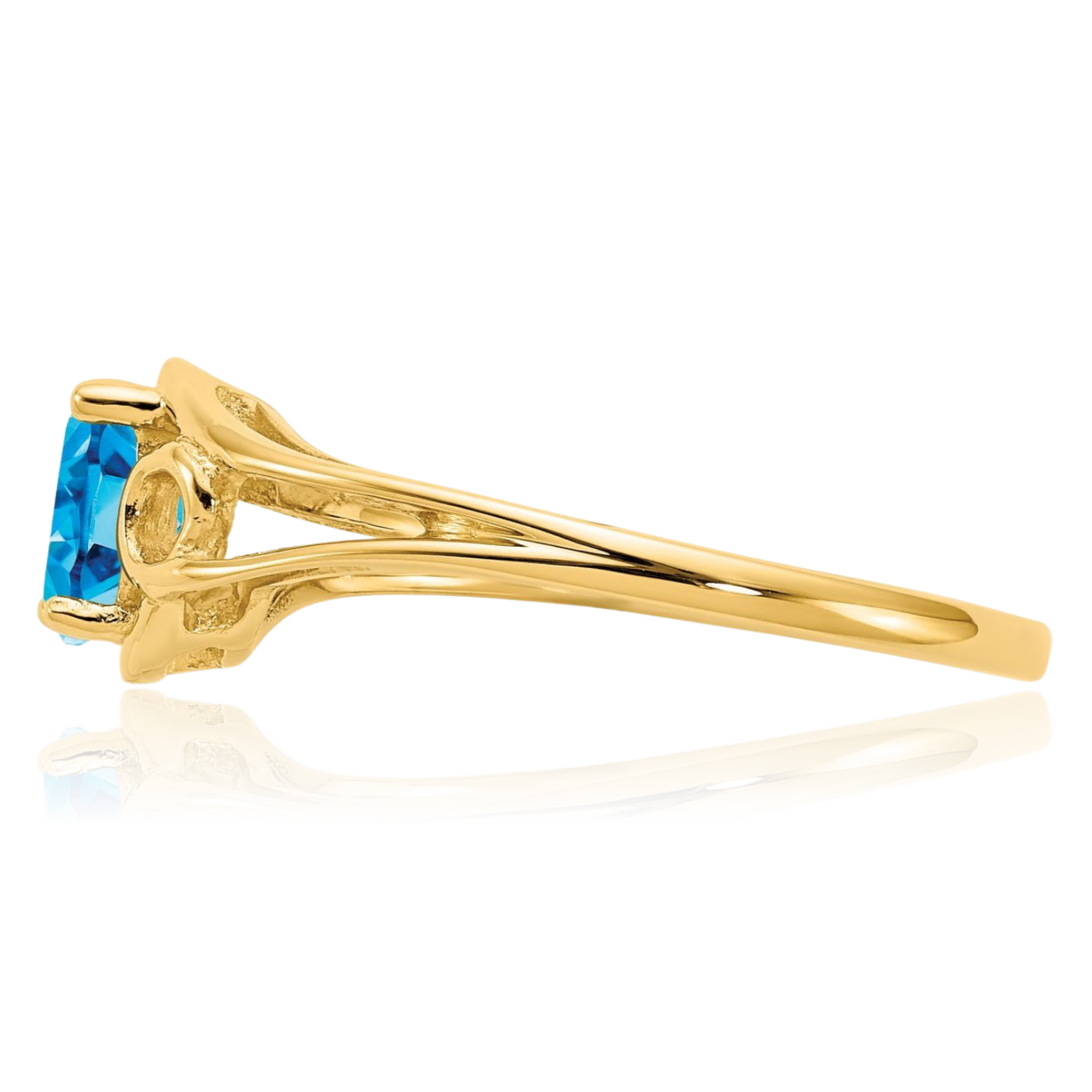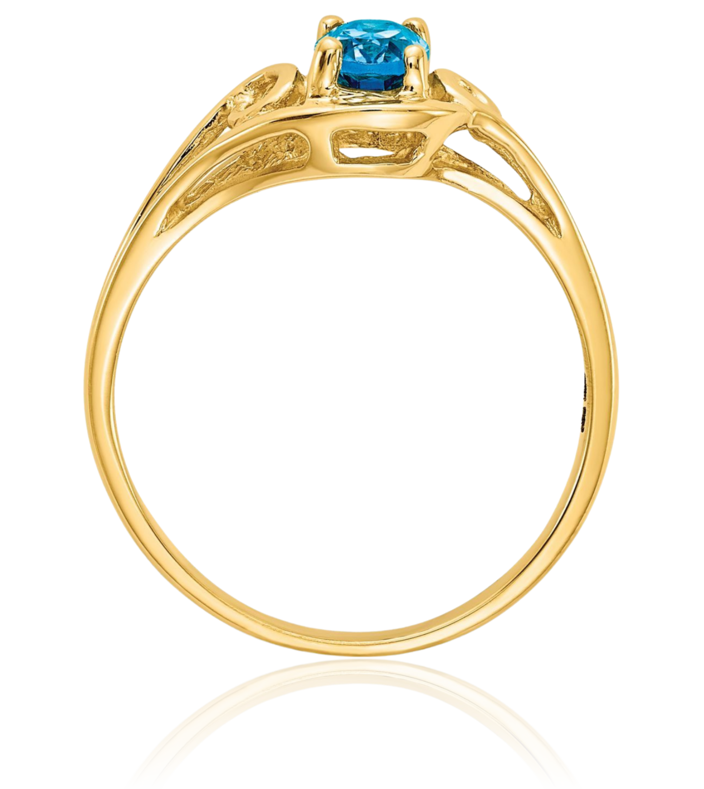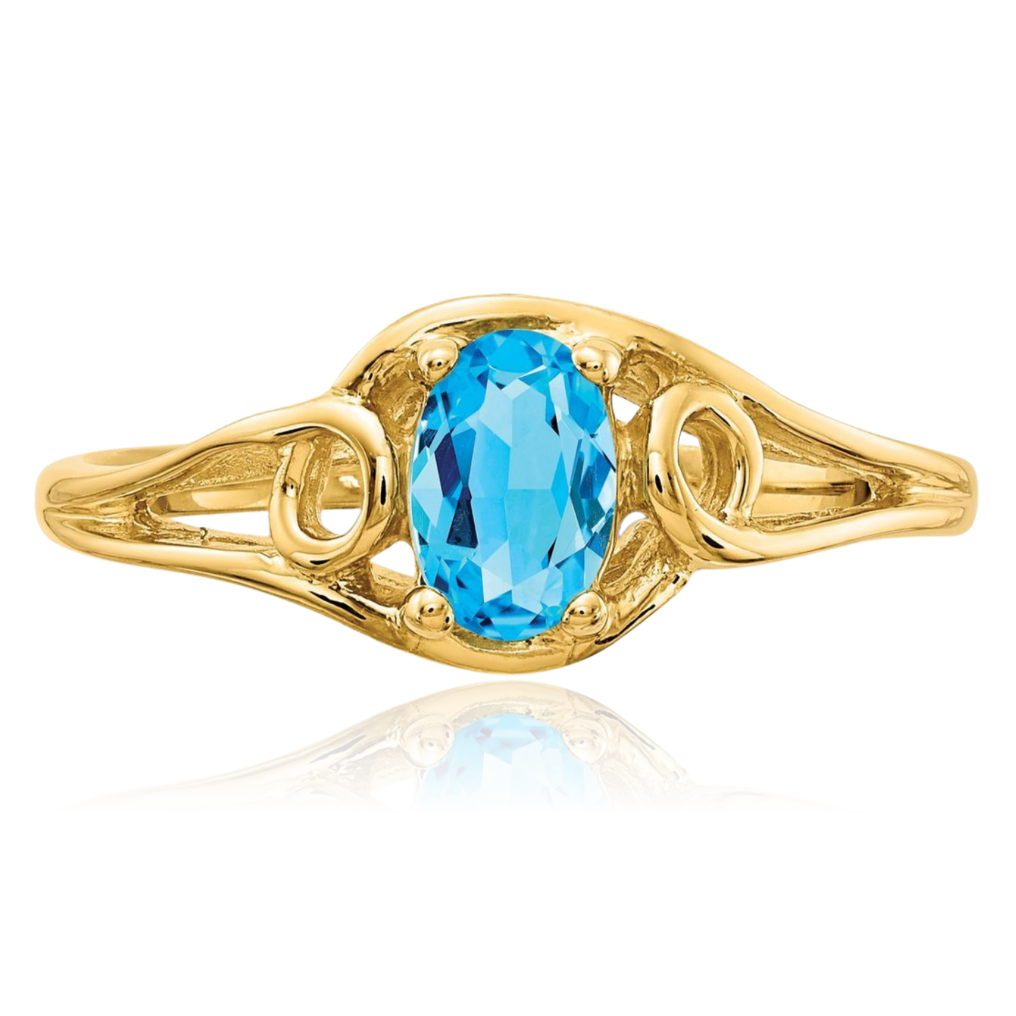 14K Solid Yellow Gold Oval Swiss Blue Topaz Ring