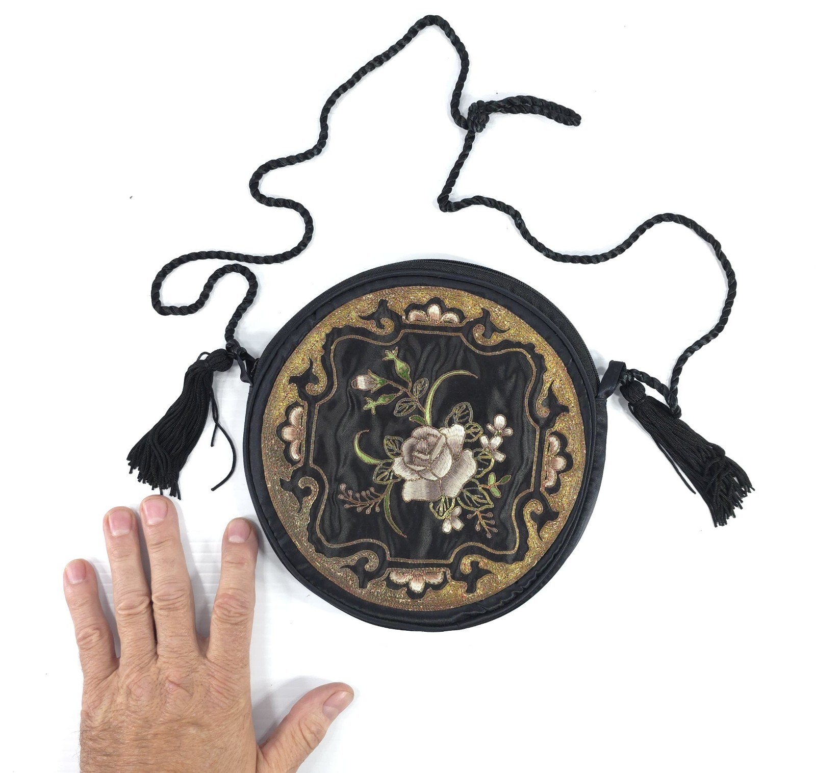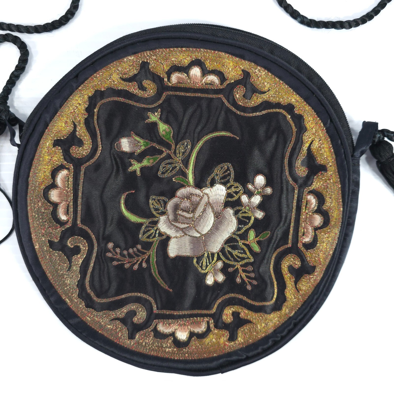 Vintage Round Finely Embroidered Chinese Japanese Asian Style Silk Purse